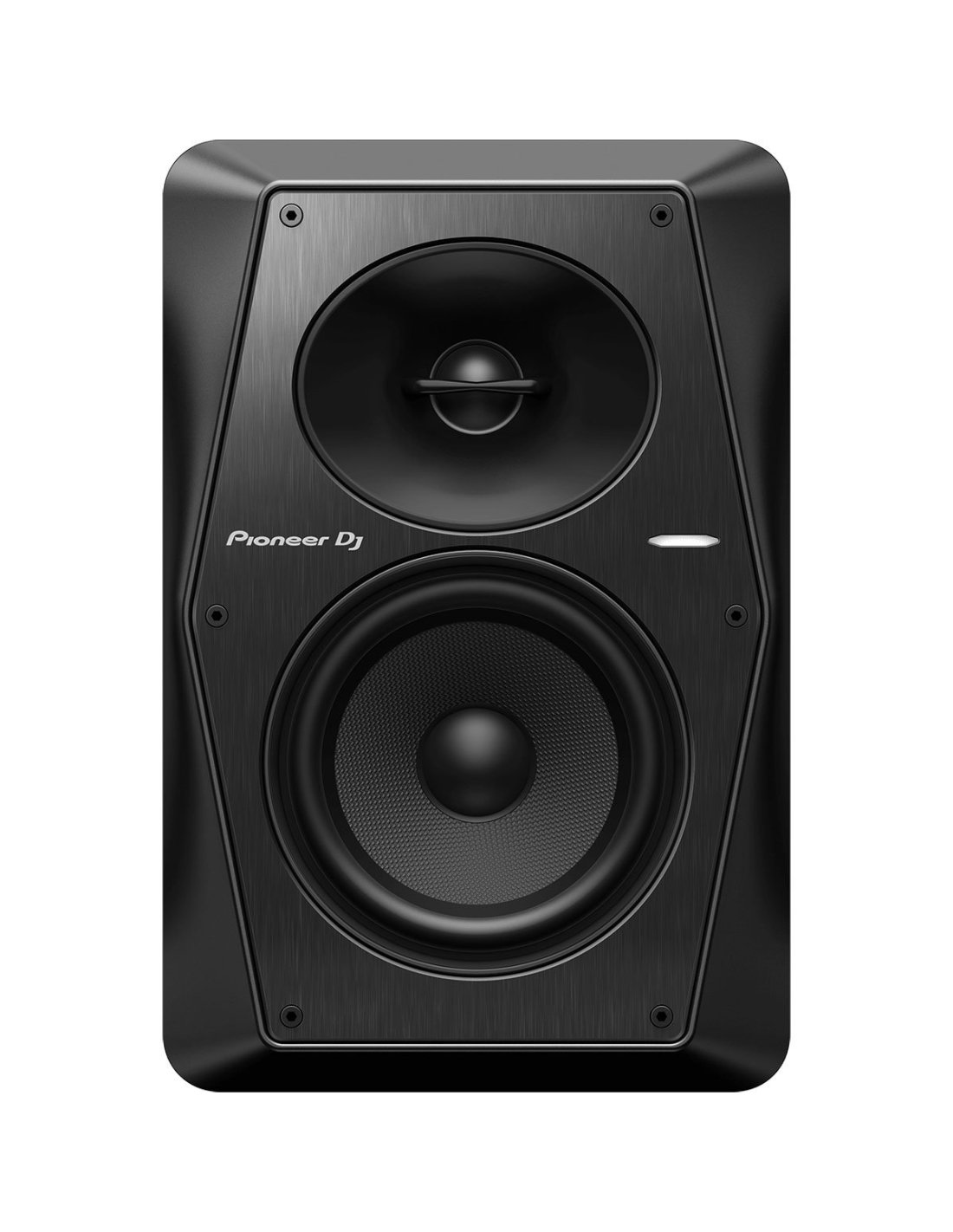 PIONEER DJ VM-50. Studio-Monitor mit 5,25" Lautsprechern und 60W Leistung. Die technischen Merkmale umfassen einen Class-D-Verstärker mit 96 kHz DSP-Sampling, einen 5,25" Aramid-Woofer und einen Soft-Dome-Hochtöner. Auf der Rückseite: DSP-Steuerung über 2 Regler für Low EQ/High EQ mit jeweils 4 Positionen, Lautstärkeregler, Auto-Standby-Schalter On/Off, kombinierter XLR/TRS-Balanced-Eingang und unbalancierter RCA-Eingang. Enthält Netzkabel und gepolsterte Füße.
