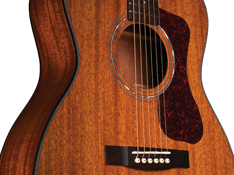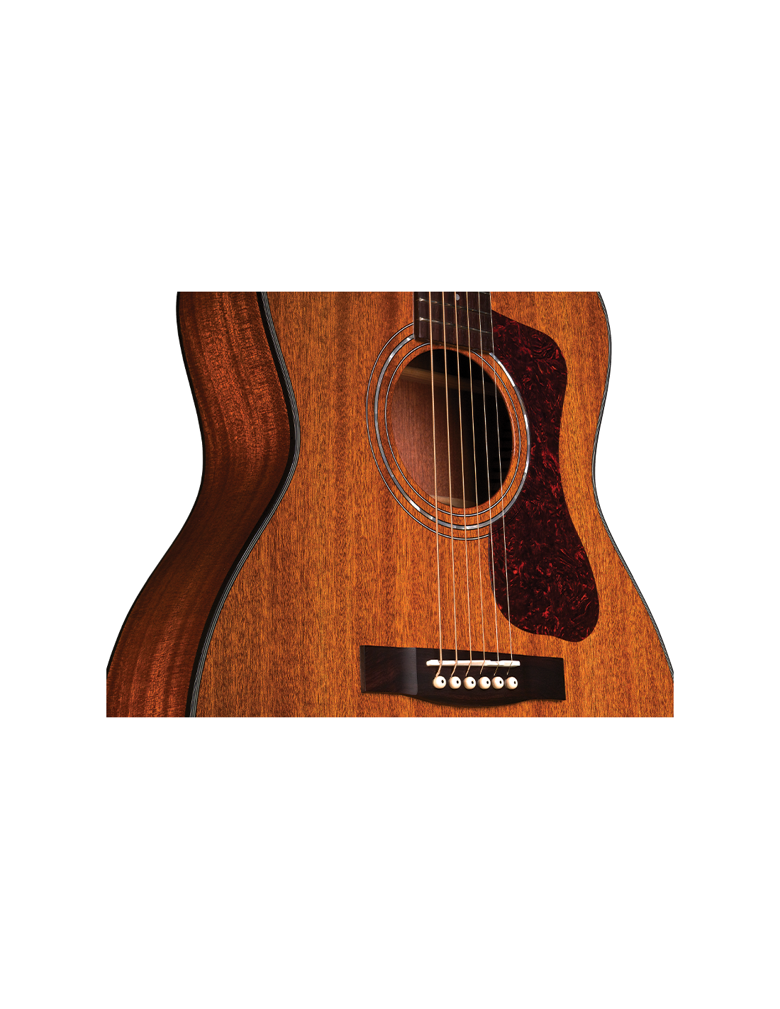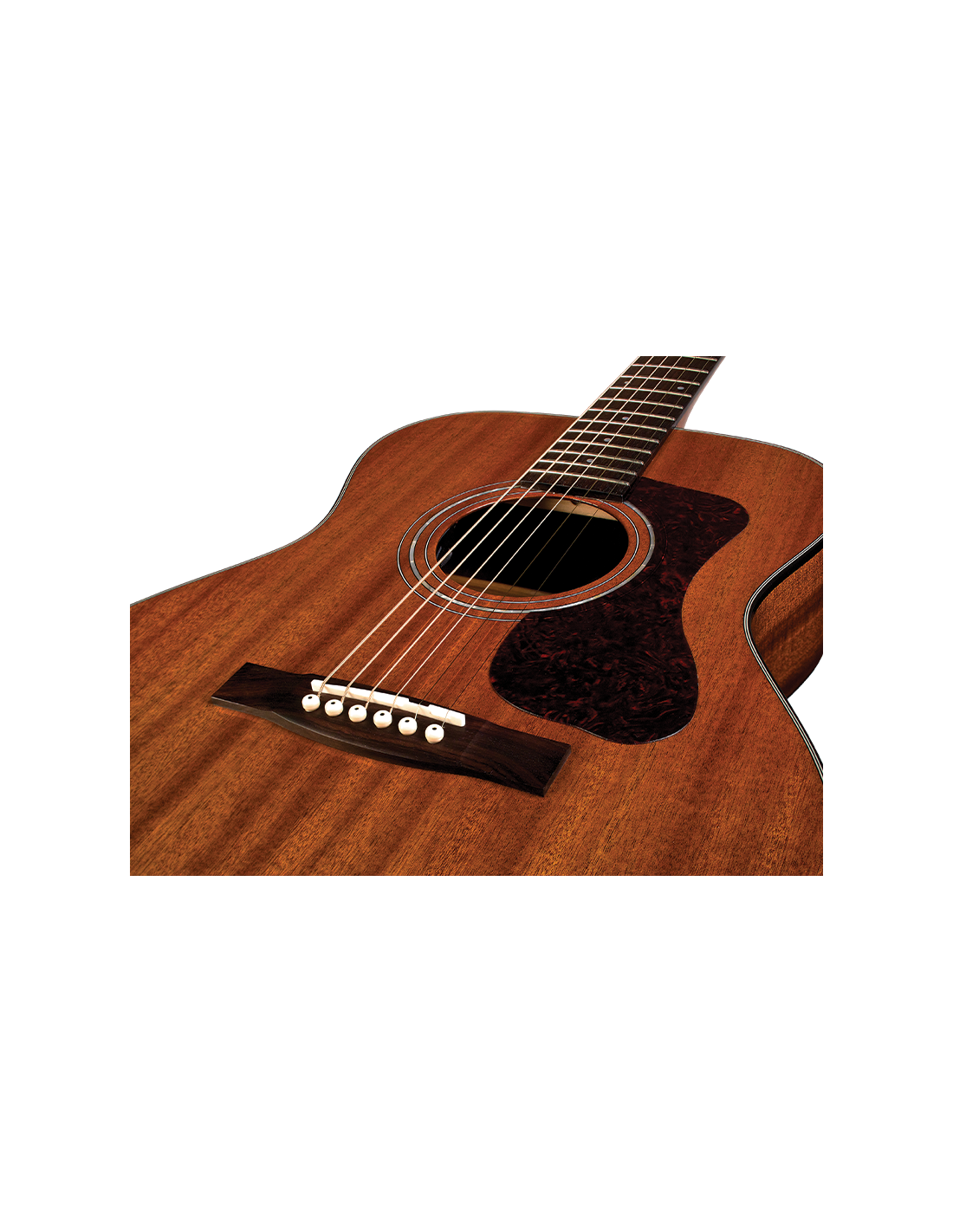 Diese akustische Gitarre im Orchestra Model ist sowohl zum Strumming als auch zum Fingerpicking geeignet, da ihre Form ein ausgezeichnetes Klanggleichgewicht gewährleistet. Die perfekte Wahl für den vielseitigen Musiker, die OM-120 verfügt über eine Decke, Zargen und Boden aus massivem afrikanischem Mahagoni für einen warmen und vollen Klang. Die OM-120 hat ein Griffbrett und eine Brücke aus Palisander, einen Sattel (44,5 mm) und einen Schalloch aus Knochen, einen Hals aus afrikanischem Mahagoni mit C-Profil in klarer Vintage-Natur, eine Rosette aus Perlmutt, einen Schlagbrett im Vintage-Stil aus tortoisefarbener Celluloid, und die offenen Guild-Mechaniken mit einem Übersetzungsverhältnis von 18:1. Die Oberfläche ist in natürlichem, glänzendem Polyurethan-Finish.