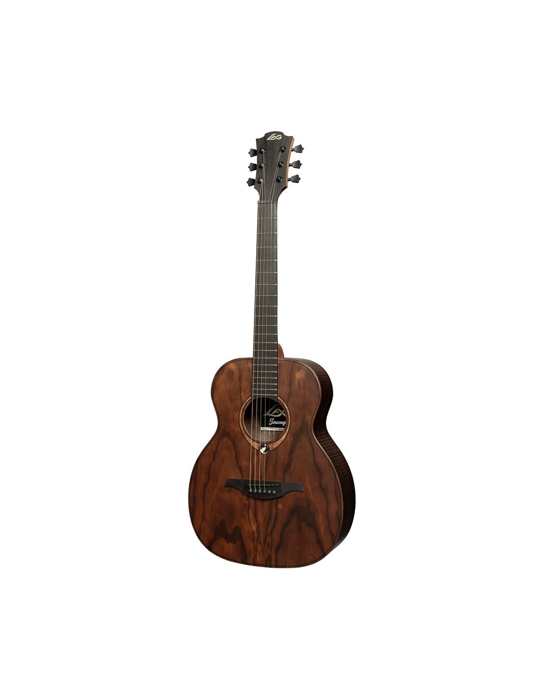 Die neue Sauvage-Serie setzt die Tradition der Innovation von Lag fort, mit Gitarren aus FSC-zertifiziertem Holz (Forest Stewardship Council) und einem umweltfreundlichen Lackierprozess, um die Umweltbelastung zu minimieren. Die Sauvage-Serie präsentiert das ikonische Design des Lag-Kopfes und ein rohes Aussehen von Rücken und Zargen, das den Charakter der Gitarre widerspiegelt: ein zäher Reisender, bereit für Abenteuer. Die mitgelieferte weiche Tasche ist robust und für den Außenbereich geeignet.