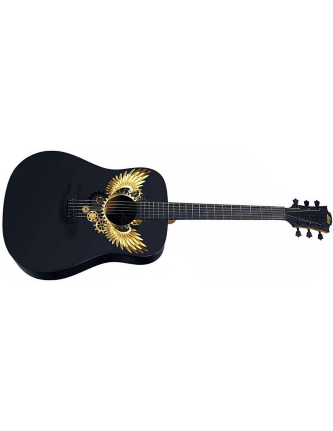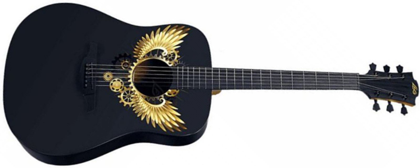 Top solido in abete canadese - Fondo e fasce in mogano khaya - Finitura nero lucida - Ponte in blackwood - Selletta compensata in grafite/72 mm - Manico in mogano khaya con finitura satinata - Trussrod a doppia azione - Tastiera in blackwood - 20 tasti in nickel - Scala 650 mm - Meccaniche die-cast nere satinate