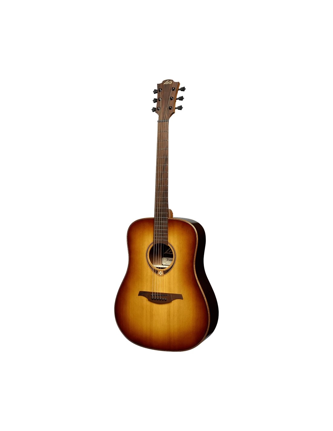 Corpo Dreadnought - Oberseite aus rotem Zedernholz - Boden und Zargen aus laminiertem Khaya - Hardware Schwarz Satin - Hochglanz-Finish - Steg aus Brownwood (Pinus radiata) - Hals aus Khaya - Griffbrett aus Brownwood (Pinus radiata) - Radius 350 mm - Mensur 650 mm - Sattel und Steg aus Graphit - Mechaniken aus Druckguss