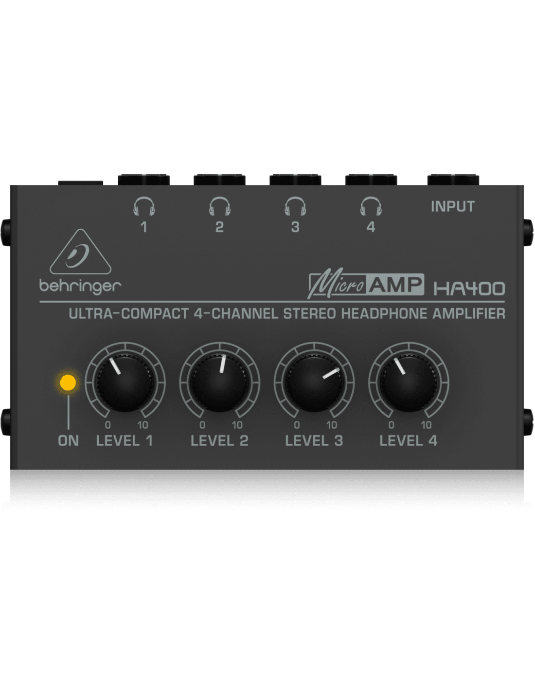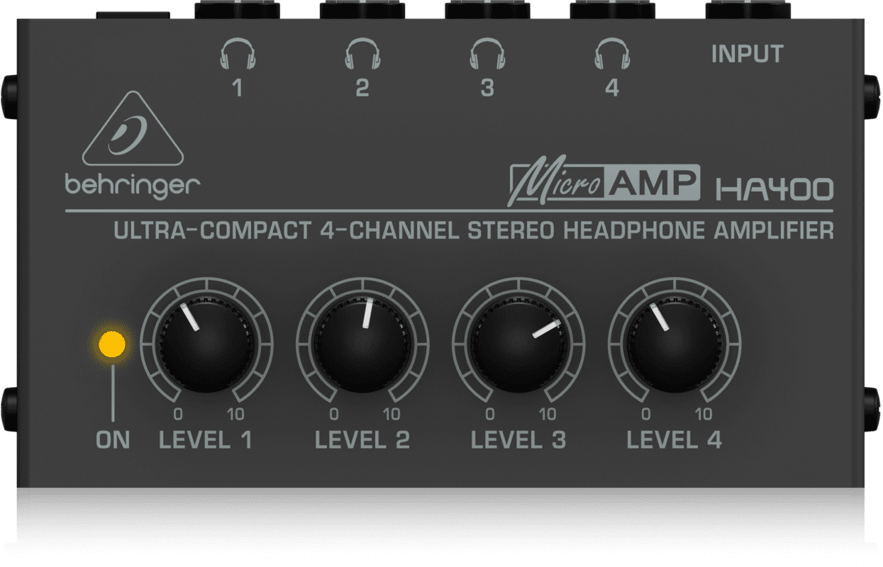 Der HA400 Microamp ist ein kompakter Kopfhörerverstärker von Behringer. Er verfügt über rauscharmen 4580-Verstärker für 4 Stereo-Kanäle mit Lautstärkeregelung für jeden Kanal, einem Stereo-Eingang von 1/4'', 4 Kopfhörerausgängen von 1/4'' und einem 12V-Netzteil im Lieferumfang.