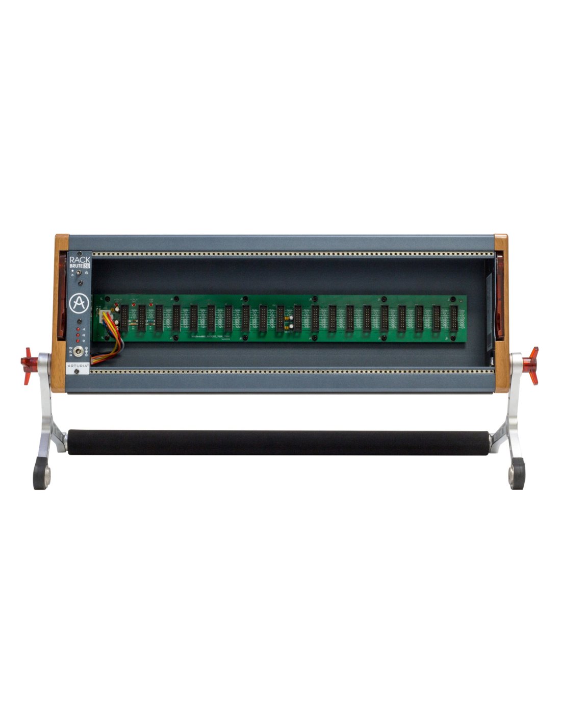 Eurorack 3U 88HP - Modulo Alimentazione 5HP inklusive - Schwarzes RackBrute 3U & 6U ist eine solide und zuverlässige modulare Lösung zur Unterbringung von Geräten im Eurorack-Format. Mit der Möglichkeit einer direkten Verbindung mit dem MiniBrute 2 und MiniBrute 2S über das spezielle Verbindungssystem Link ermöglicht RackBrute eine vollständige Erweiterung in die Eurorack-Welt für die beiden MiniBrute, kann aber natürlich auch im Standalone-Modus mit jedem anderen Setup verwendet werden. Das RackBrute ist in zwei Versionen erhältlich, mit 3 Rack-Einheiten und mit 6 Rack-Einheiten. Zu den Hauptmerkmalen des Systems gehört die Möglichkeit, 6 verschiedene Konfigurationen zu haben, wobei das RackBrute auch gebogen werden kann, um es als echtes Gehäuse für den MiniBrute 2/2S zu verwenden, um eine praktische und tragbare Lösung mit der speziellen Tasche zu haben. RackBrute 3U ermöglicht die Unterbringung von Modulen bis zu 88hp, 83hp mit angeschlossenem Netzteil, wobei hp für „horizontal pitch“ steht, das Standardmaß für die horizontale Breite im Eurorack-Format mit 1 hp = 5,08 mm. RackBrute 6U ermöglicht die Unterbringung von Modulen bis zu 176hp, 171hp mit angeschlossenem Netzteil. Je nach den 6 verschiedenen Konfigurationen kann ein gewinkeltes Panel über dem MiniBrute 2/2S positioniert werden oder die Module können gut sichtbar vorne platziert werden. RackBrute integriert auch ein 5hp Netzteil mit Status-LED und bis zu 1600mA +12V Ausgang, 1600mA -12V Ausgang (2 separate Schaltkreise mit 800mA) und 900mA +5V Ausgang. Hauptmerkmale: ● Modulare Lösung für das Eurorack-Format ● Optionen 3U und 6U ● Möglichkeit, MiniBrute 2 und MiniBrute 2S mit dem Link-System zu verbinden ● Faltbare Lösung ● Solide und zuverlässige Lösung ● 6 mögliche Konfigurationen ● RackBrute Travel Bag optional