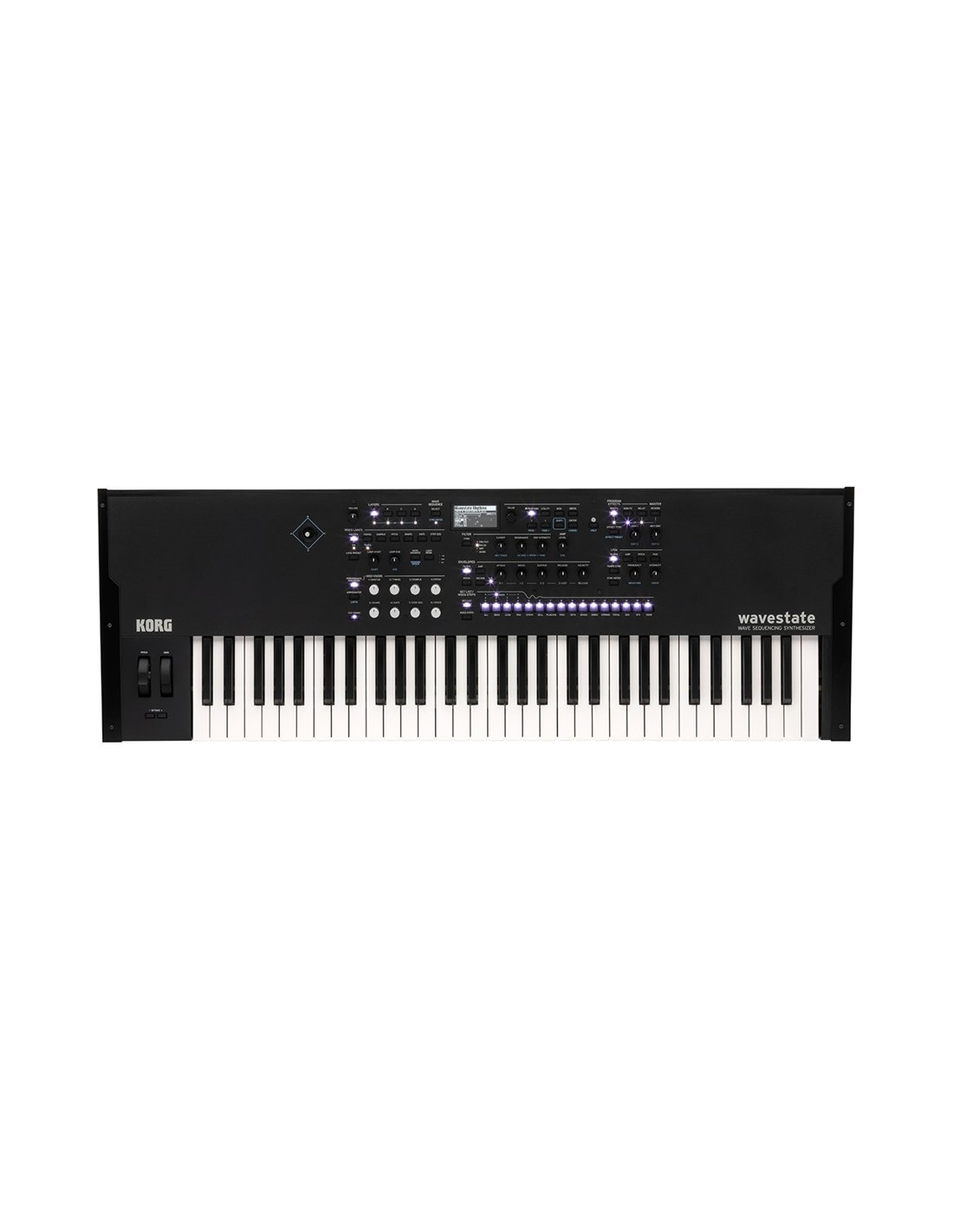 KORG wavestate SE digitale Synthesizer Made in Japan mit 61-Tasten Keyboard und Aftertouch, verwendet einen leistungsstarken Generator mit Vektorsynthese, mit 120 Stimmen Stereo-Polyfonie, die vereint: Wavesequencing 2.0, Wavetable, Sample Player mit der Möglichkeit, eigene Samples über die kostenlose Software Sample Builder zu laden. Es verfügt über eine Multitimbrale Struktur mit 4 unabhängigen Layern, Multimode-Filter und umfangreiche Modulationsmöglichkeiten. Es nutzt die Technologie Smooth Sound Transition für den nahtlosen Übergang zwischen den Klängen.