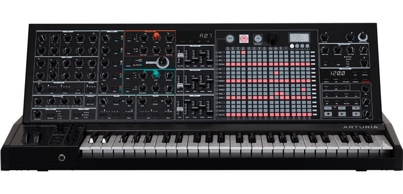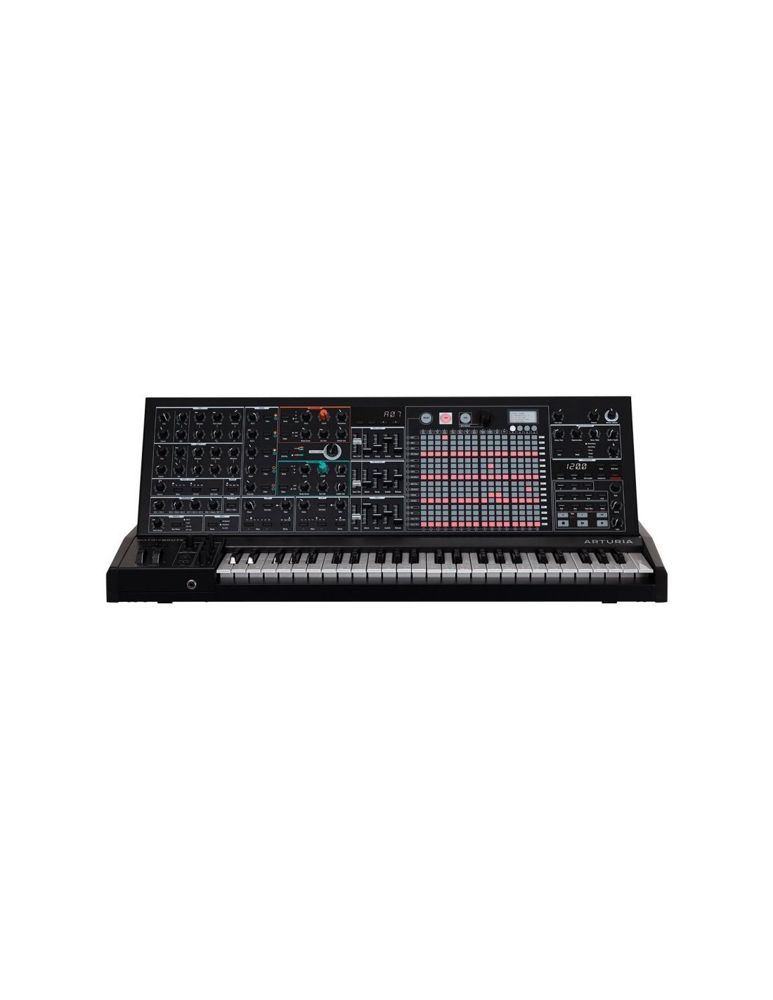 Analoger monophoner Matrix-Synthesizer - Limitierte schwarze Version MatrixBrute ist ein äußerst leistungsstarker analoger Synthesizer mit drei Brute-Oszillatoren, Ladder-Filter und Steiner-Parker, drei Hüllkurven, analogen Effekten und einer leistungsstarken und vielseitigen Modulationsmatrix. Die Entwickler von Arturia, die dieses Projekt über Jahre hinweg vorangetrieben haben, die gleichen, die hinter den außergewöhnlichen Erfolgen MiniBrute und MicroBrute stehen (unter den weltweit am weitesten verbreiteten analogen Synthesizern), sind fest davon überzeugt, dass es sich um eine Klanggenerierungs- und Modulationsmaschine mit beispielloser Leistung und Vielseitigkeit handelt. MatrixBrute nutzt jedes Modul maximal aus durch eine Matrix, die zahlreiche potenzielle Modulationswege bietet. Es ist möglich, eine neue Klangpalette zu erfinden und seine eigene unverwechselbare Note in jedes Stück einzubringen. Die Matrix kann auch Presets abrufen. Man kann aus den 256 verfügbaren (von höchster Qualität) Presets auswählen oder sofort gespeicherte Klänge abrufen. MatrixBrute bietet die gesamte Leistung eines modularen Synthesizers und zusätzlich die grundlegende Möglichkeit, jeden Patch zu speichern. Es ist auch möglich, die Matrix zu verwenden, um Sequenzen zu erstellen und abzuspielen, sodass die Klänge genau so evolvieren können, wie gewünscht. Auch analoge Effekte wurden integriert, um den Signalweg zu 100 % „voll analog“ zu halten. Analoger Delay, Hall, Chorus, um volle und kräftige Klänge zu erzielen. Die Ausstattung umfasst auch einen absolut hochwertigen Arpeggiator. MatrixBrute ist einfach und intuitiv, eine formidable Inspirationsquelle für ein Instrument, das neue und kraftvolle Klänge liefern kann. Es bietet eine beeindruckende Palette an Verbindungen und ermöglicht die Arbeit mit jedem Setup. Zudem verfügt es über ein robustes und leichtes Gehäuse, das einen problemlosen Transport ermöglicht. Hauptmerkmale: • Analoger Mono/Duophonsynthesizer • 256 Presets (Werkseinstellungen & Benutzer) • 2 analoge VCOs • Saw + UltraSaw, Square + Pulsbreite, Triangle + Metalizer, Sub1 analog linear VCO/LFO • Wellenformen Saw, Square, Triangle, Sine; LFO-Zeitteilung; Key-Track VCO 2>1 Hard-Sync • Audio Mod: VCO1>2; VCO1 < VCO3 > VCO2; VCF 1 < VCO3 > VCF 2; VCF1 < Noise > VCF2 • Rauschgenerator: • Weiß, Pink, Rot und Blau • 5-Kanal-Audiomischer mit Filter-Routing • Steiner-Parker-Filter 12+24 dB pro Oktave; Drive; Brute-Faktor; Tiefpass, Hochpass, Bandpass, Notch • Ladder-Filter 12+24 dB pro Oktave; Drive; Brute-Faktor; Tiefpass, Hochpass, Bandpass • 2 LFOs: Sine, Tri, Square, Ramp, Saw, Random, S&H • 3 Hüllkurvengeneratoren: • 2 Attack, Decay, Sustain, Release • 1 Delay, Attack, Decay, Sustain, Release • Externer Audioeingang • 16x16 Modulationsmatrix-Panel • 64-Schritt-Sequencer • Step Enable, Slide, Accent, Modulation • Speichern und Abrufen von Sequenzmustern „on the fly“ • Analoge Effekte: Stereo-Delay, Delay, Flanger, Chorus, analoger Hall • Arpeggiator • 12 CV/Gate Ein- und Ausgänge • Audioeingang: Line / Instrument • Stereo-Audioausgang • MIDI und USB i/o • Eingänge für Fußpedal und Sustain