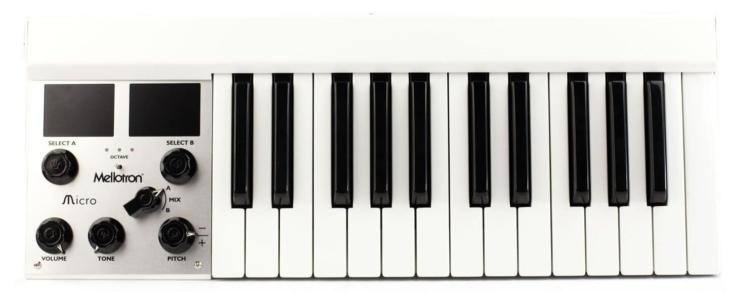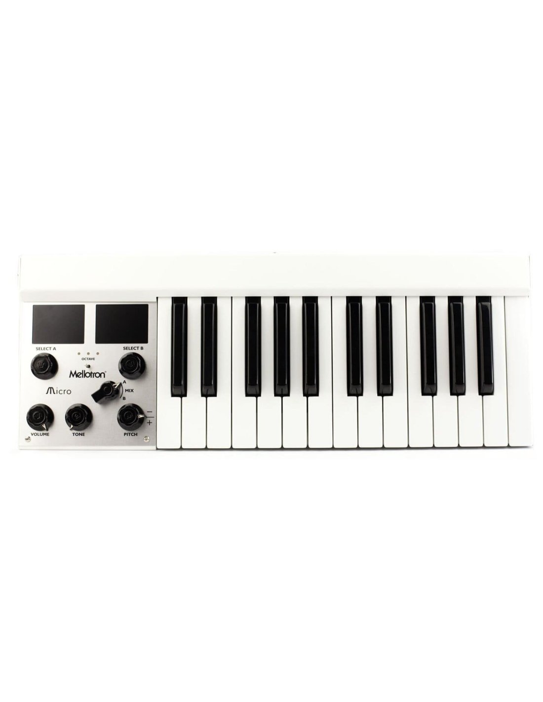 Das Mellotron Micro ist die kleinste verfügbare Version des digitalen Mellotron M4000D. Es ist mit 100 unkomprimierten 24-Bit-Sounds von Mellotron und Chamberlin ausgestattet, 2 Displays, Oktavschalter, Lautstärke-, Ton-, Pitch- und Mix A/B-Regler.
