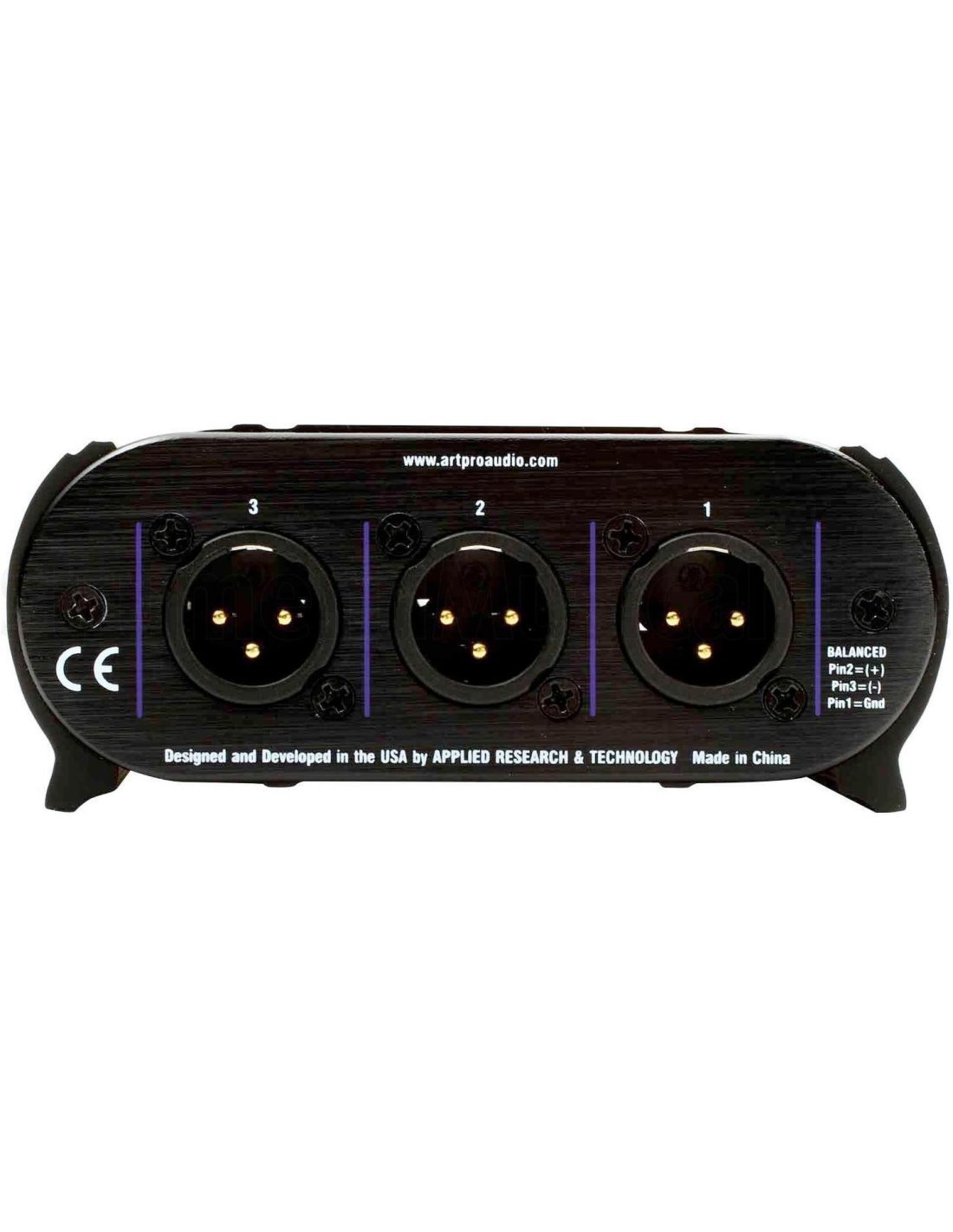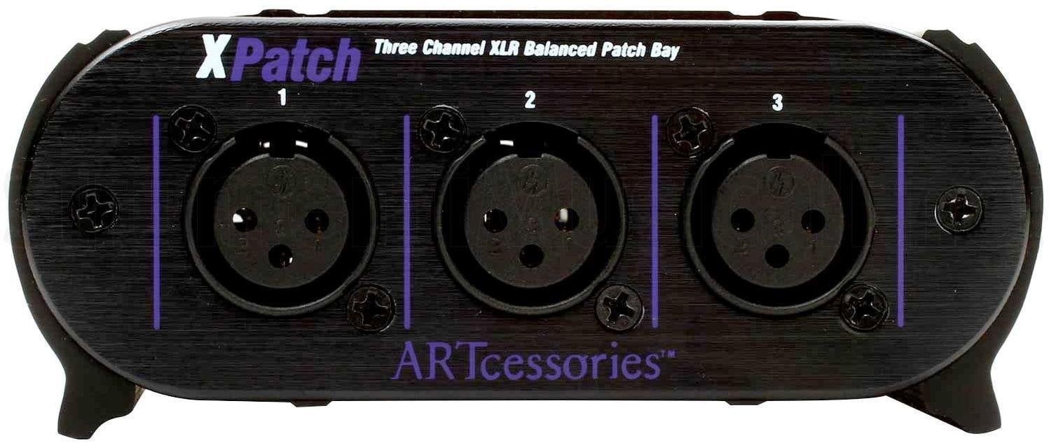 ART XPATCH 3 CANALI ist eine passive Patch Bay-Schnittstelle mit 3 direkten, symmetrischen Kanälen, mit 3 XLR-F-Eingängen, 3 XLR-M-Ausgängen, PCB-Verkabelung an allen Ausgängen, Gehäuse aus Aluminium