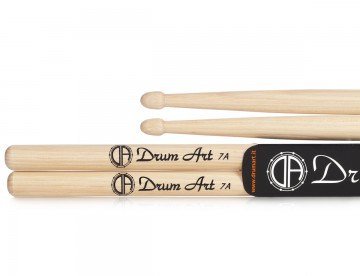 DRUM ART 7A. Paar 7a Drumsticks aus amerikanischem Nussbaum mit leichtem und ausgewogenem Körper in verlängerter Länge, geeignet für diejenigen, die auch bei reduzierten Lautstärken eine große Kontrolle suchen, mit Eichelspitze für mehr Präsenz auf den Becken.