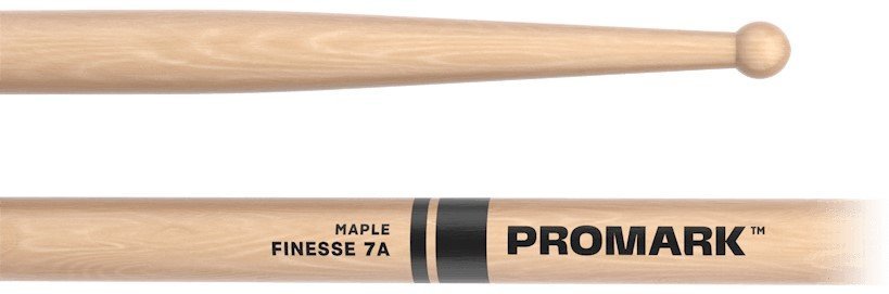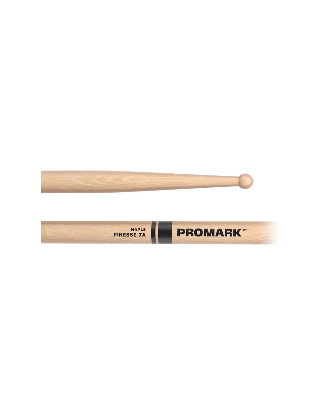 PRO MARK FINESSE 7A HOLZSPITZE RBM535RW. 7A-Stick aus Ahorn, in reduzierten Abmessungen, sowohl im Gewicht als auch im Durchmesser, mit kleiner runder Holzspitze, die einen brillanten Ton mit verbesserter Artikulation erzeugt. Besonders geeignet für sanfte Genres wie Jazz und Blues.