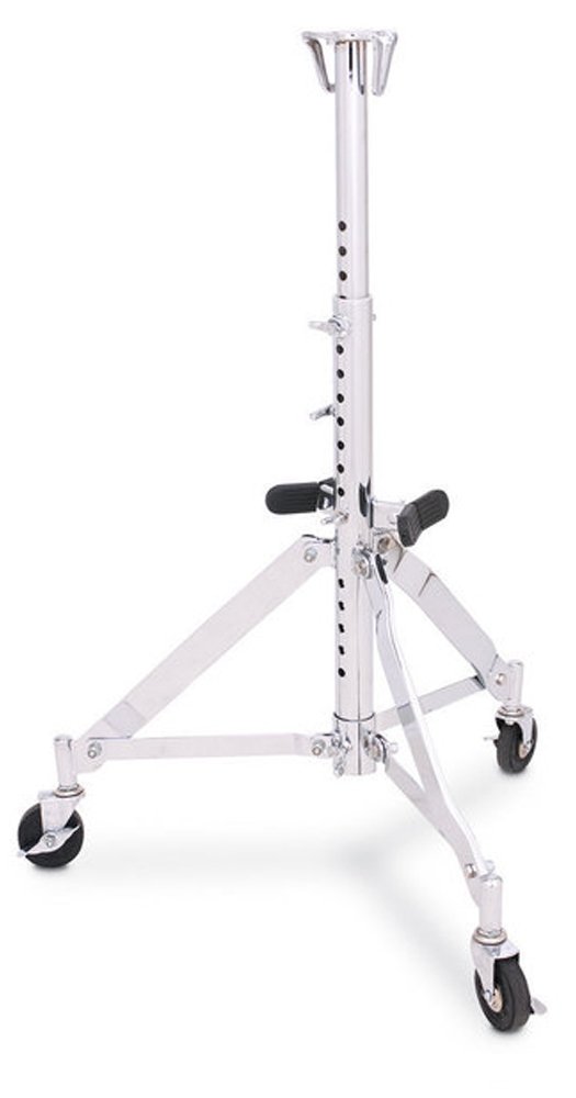 LP 290S MONTAGEHALTERUNG. Doppeltständer für Congas aus verchromtem Stahl mit verstellbaren Montageklammern, Rädern mit Blockierung, Pin Lock zur Stabilisierung des Ständers und Gummistützen.