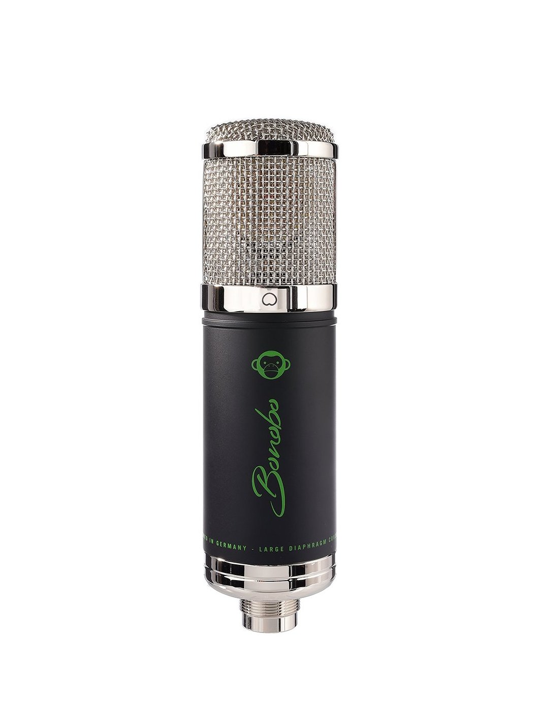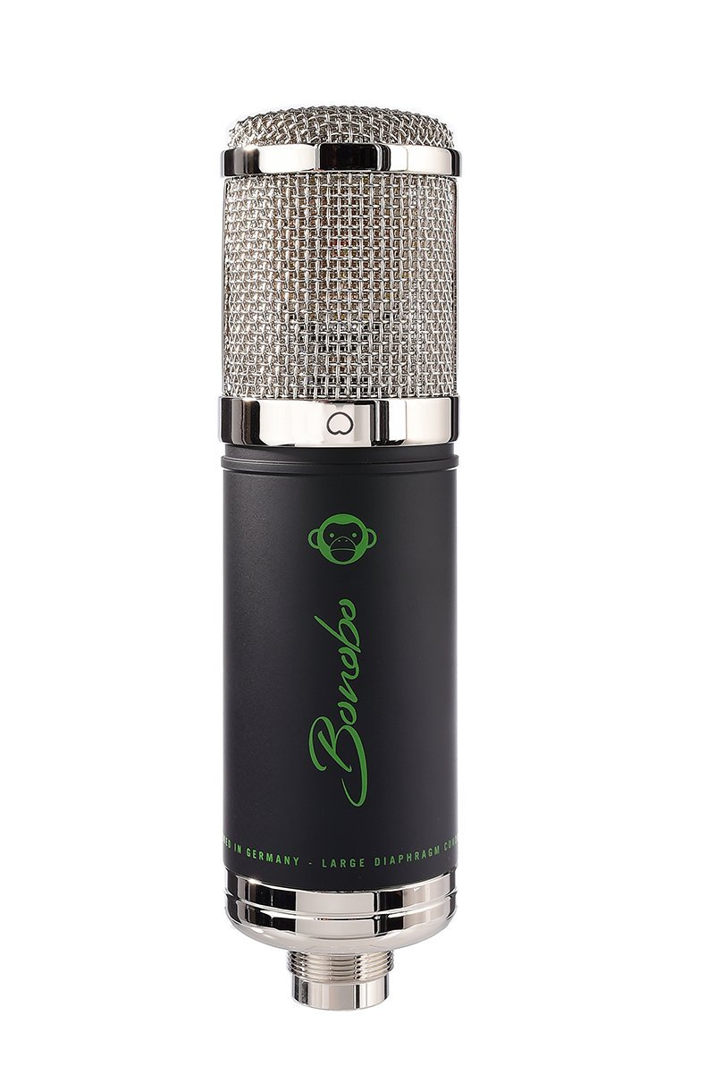 Mikrofon mit Kondensator Das Kondensatormikrofon "Bonobo" ist für die Aufnahme von Stimmen und Instrumenten gedacht. Das Richtdiagramm ist nierenförmig. Es kann für verschiedene Anwendungen in der Studioaufnahme verwendet werden. Es bietet einen detaillierten und reichen Sound, perfekt zum Erfassen von Stimmen und akustischen Gitarren. Das Mikrofon wird zusammen mit einem Popfilter, einem Shock-Mount und einem Schutzhülle geliefert. Erhältlich in zwei verschiedenen Farben: schwarz und grün. Technische SpezifikationenTyp: Großmembran-KondensatorKapsel: 34 mmKardioides RichtdiagrammFrequenzgang: 20 Hz–20 kHzMaximaler SPL am Eingang: 132 dB (@ 1 kHz _/< 1 % T.H.D.)Ausgangsimpedanz: 150 Ohm (+/-30 %) (@ 1 kHz)Empfindlichkeit: -34 dB ±2 dB (0 dB = 1V/Pa @ 1 kHz)Signal-Rausch-Verhältnis: 80 dBGewicht: 360 gHöhe: 181 mmDurchmesser: 51 mmVerfügbare Farben: schwarz, grün