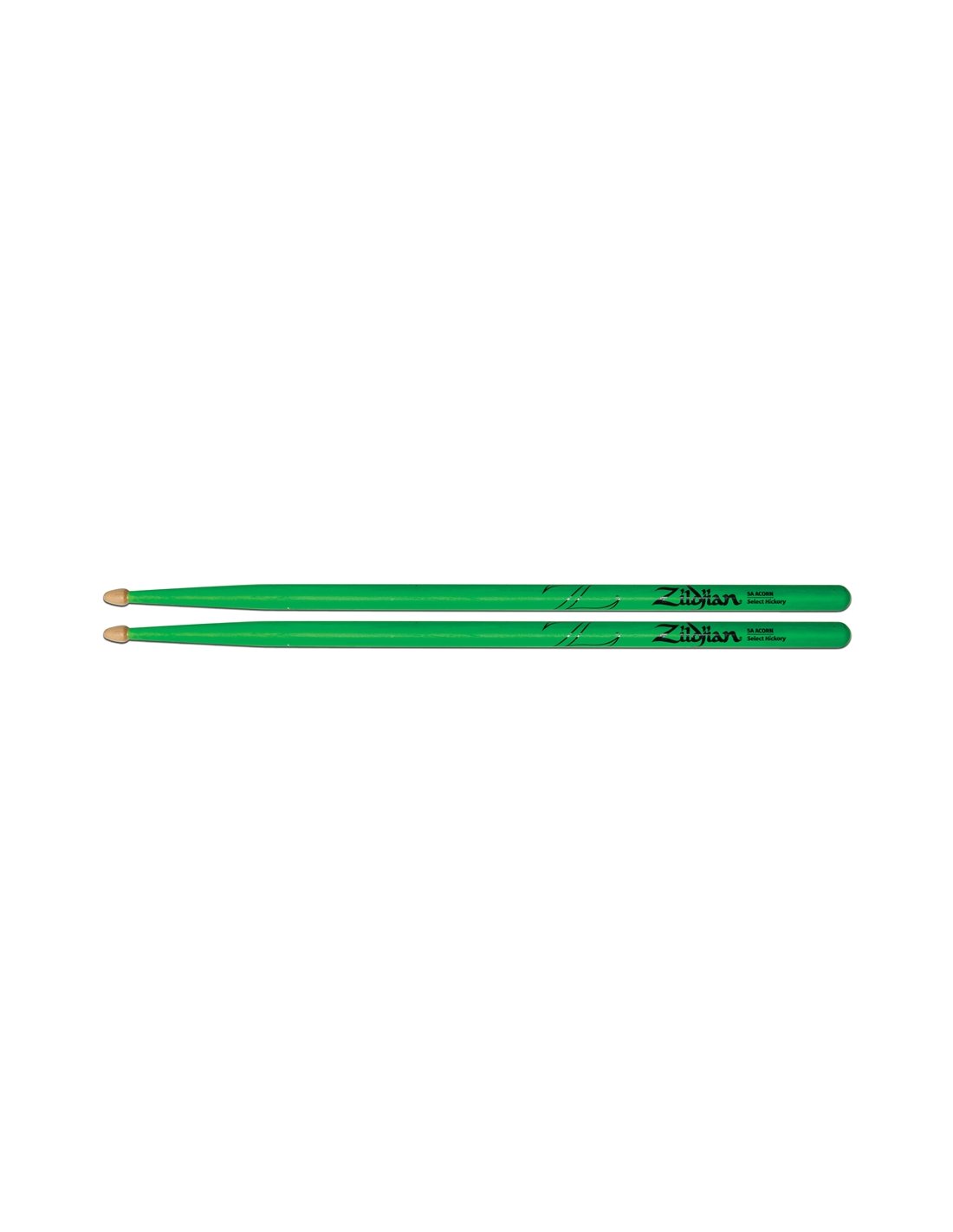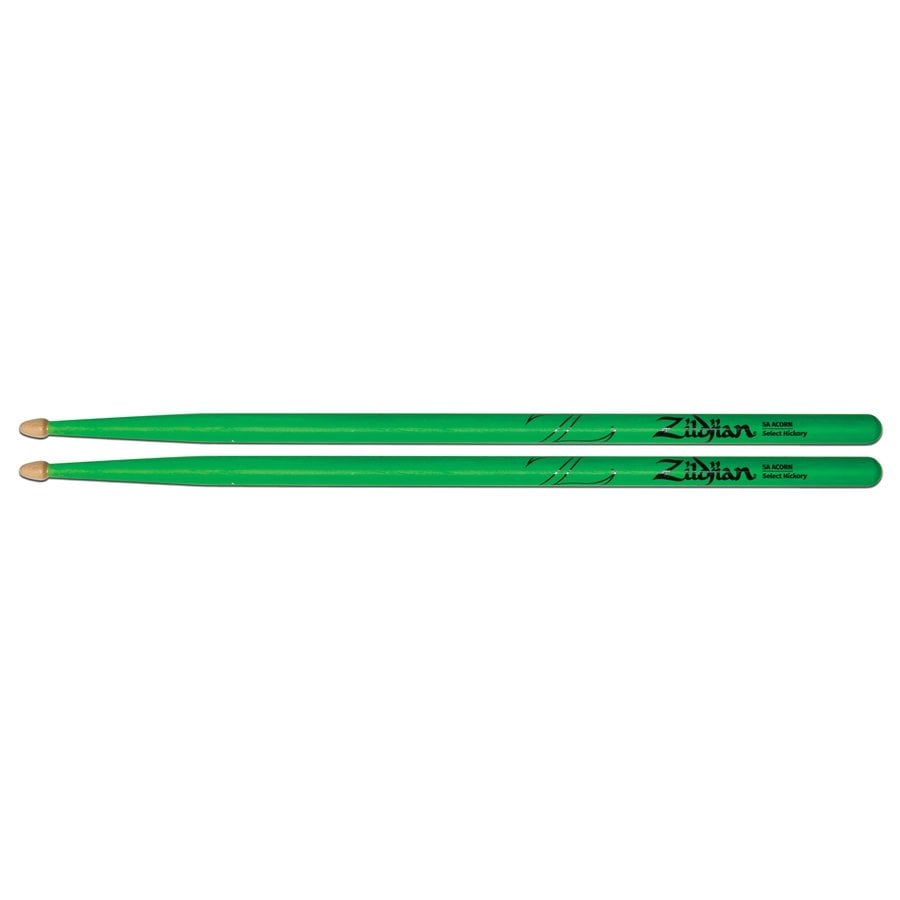 Die Zildjian Z5AACDGG-5A Hickory Series ist der 5A Acorn Schlagzeugstock in einer Auswahl neuer mehrschichtiger Neon-Grün-Finishs.
