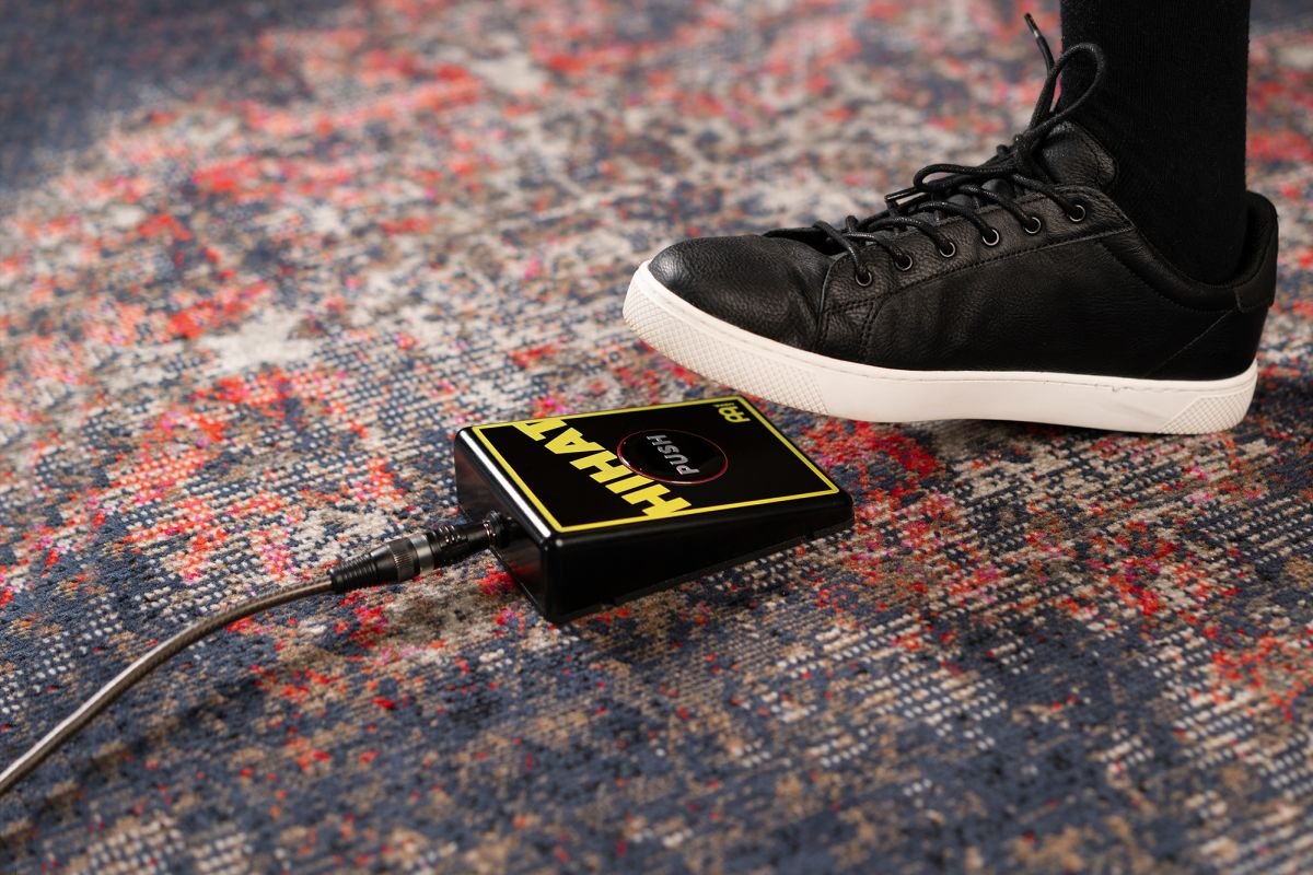 'Pedale Effekte Hihat. Die Meinl Digital Percussion Stomp Box ist ein elektronisches Pedal, das gespielt wird, um Begleitrhythmen zu erzeugen. Jedes Pedal ist mit einem vorprogrammierten Percussion-Soundeffekt ausgestattet, der mit jedem Stil kombiniert werden kann, und der große, hochreaktive PUSH-Knopf sorgt für einen flüssigen Klang.