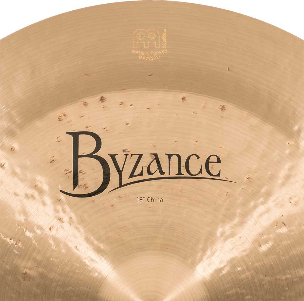 'Cina 18'', Serie Byzance Traditional. Die Teller der Serie Byzance Traditional werden handwerklich in unserer Fabrik in der Türkei von Spezialisten unter Beachtung der Tradition im gesamten Prozess hergestellt. Alle Teller bestehen aus B20-Bronzelegierungen. Verschiedene Techniken sind am Prozess beteiligt, sowohl das Hämmern als auch das Drehen. Die traditionelle Verarbeitung verleiht der Serie den klassischen Klang des türkischen Beckens, den wir seit über einem Jahrhundert hören.