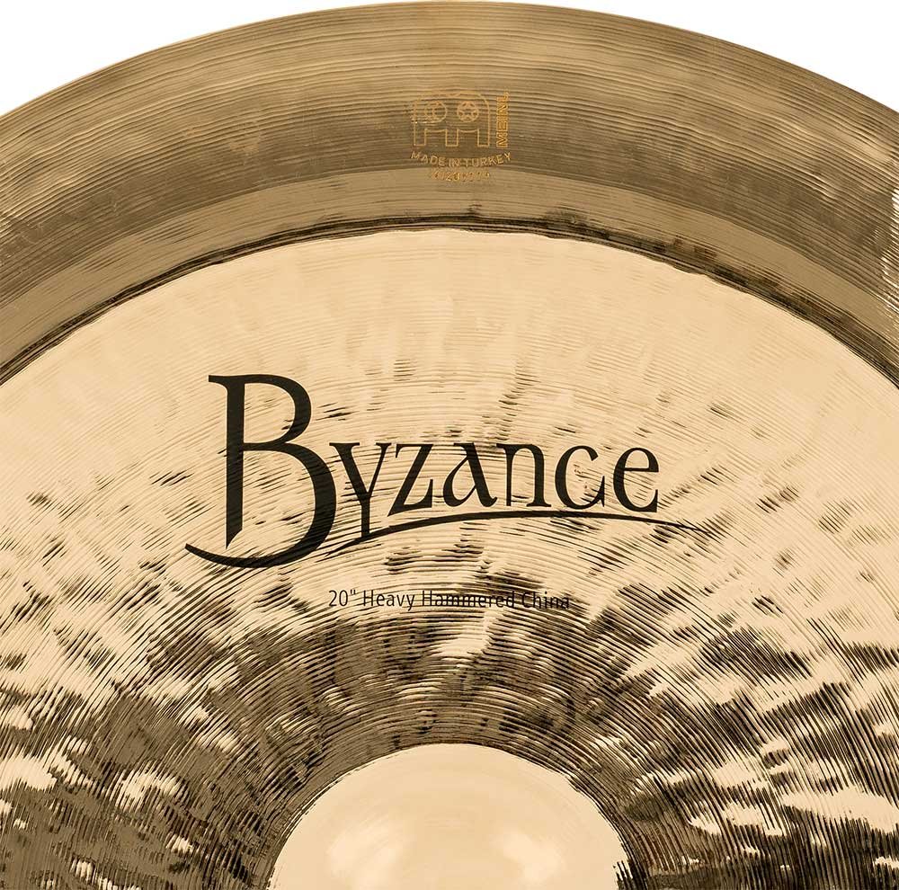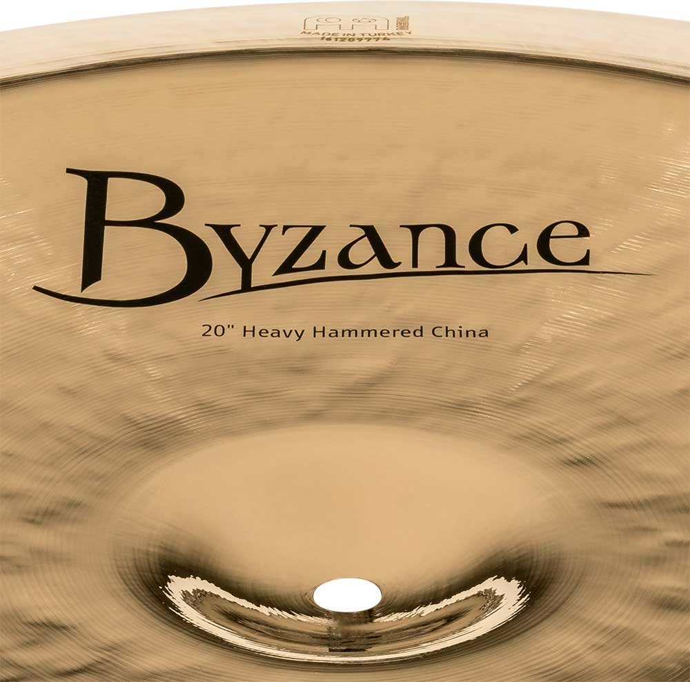 'China 20'' Heavy Hammered, Serie Byzance Brilliant. Die Teller der Serie Byzance Brilliant werden in unserer Fabrik in der Türkei von Fachleuten handgefertigt und respektieren die Tradition im gesamten Prozess. Alle Platten bestehen aus B20-Bronzelegierungsplatten. Verschiedene Techniken sind am Prozess beteiligt, sowohl das Hämmern als auch das Drehen. Darüber hinaus erhalten sie eine glänzende Lackierung, die ihnen einen explosiveren Klang und ein spektakuläres glänzendes Finish verleiht.