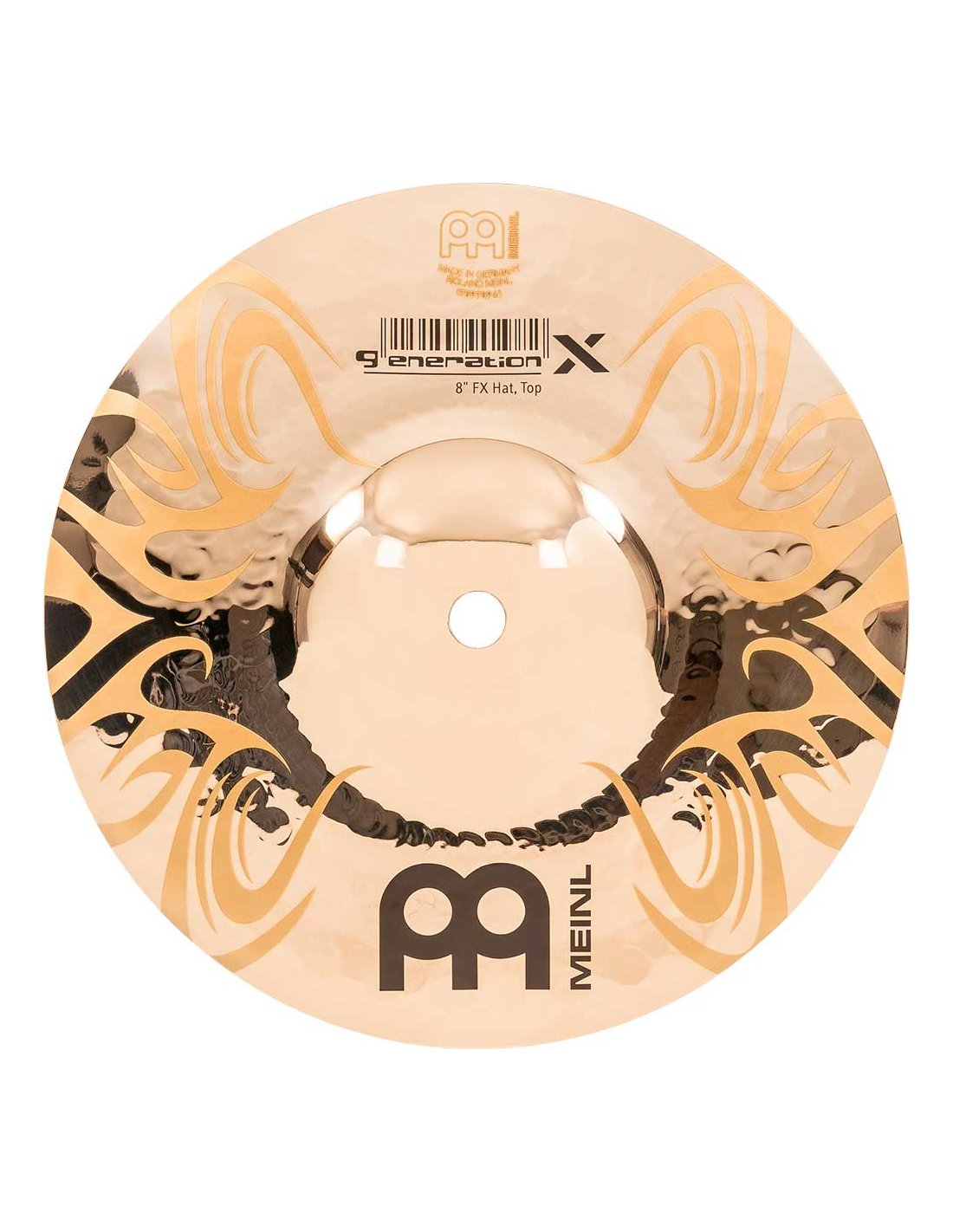 'Hi-hat 8''. Serie Gen-X. Die Becken der Serie Gen-X werden in Deutschland aus verschiedenen Legierungen hergestellt. Der Prozess umfasst verschiedene Techniken, sowohl Druck- als auch computergestütztes Hämmern. Die Oberflächenvarianten hängen vom Modell ab und verleihen jedem Becken ein spektakuläres Aussehen und einen besonderen Klang.