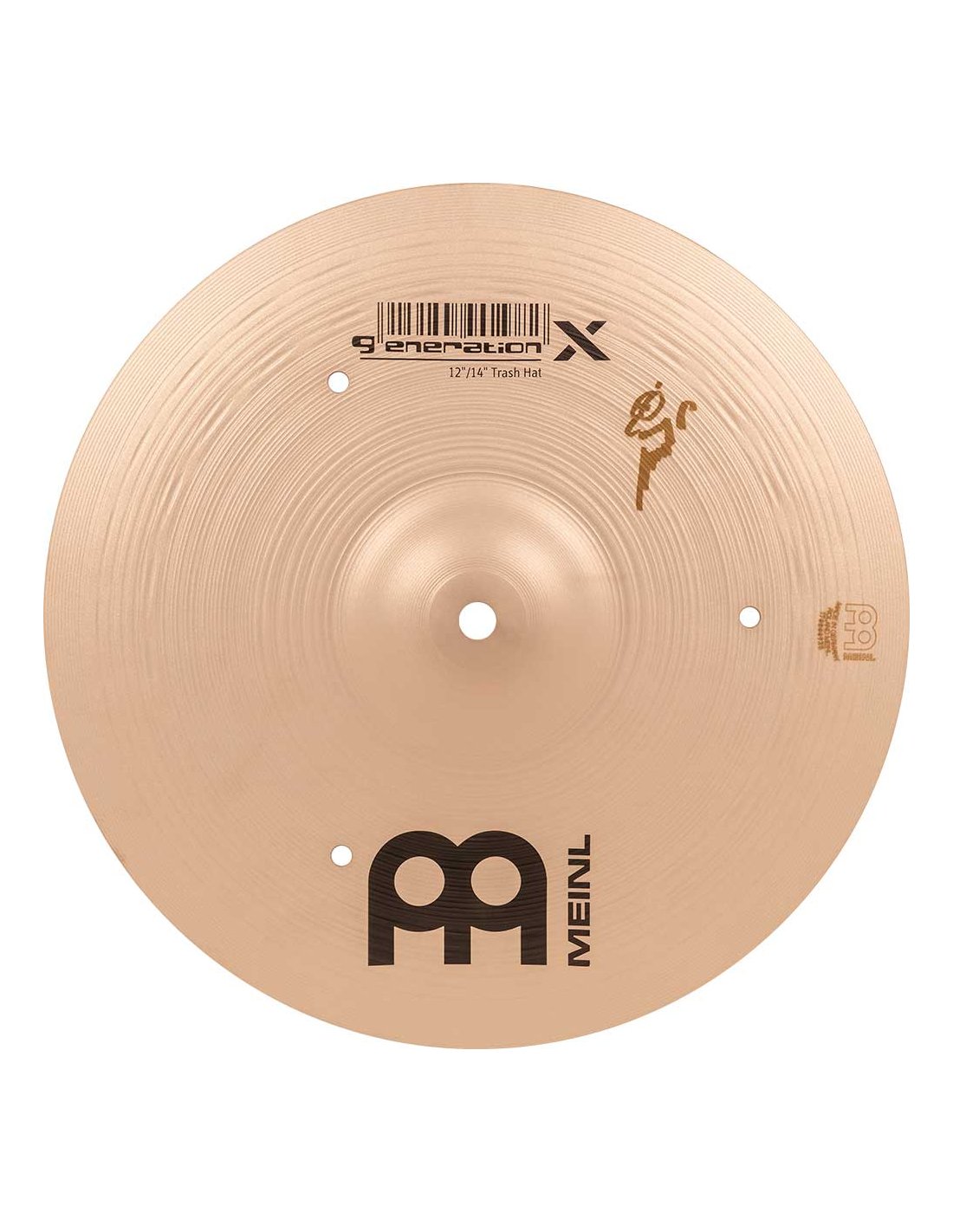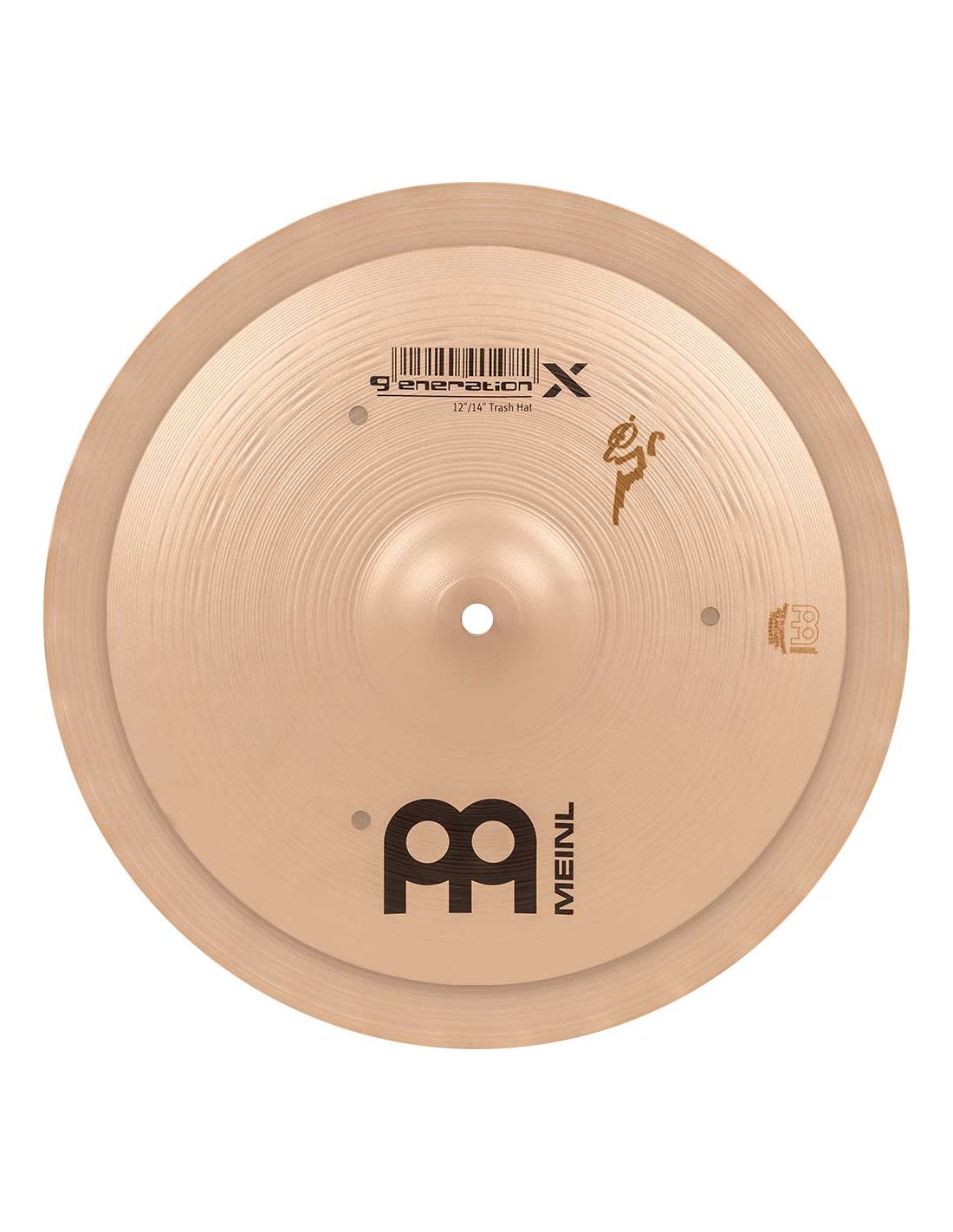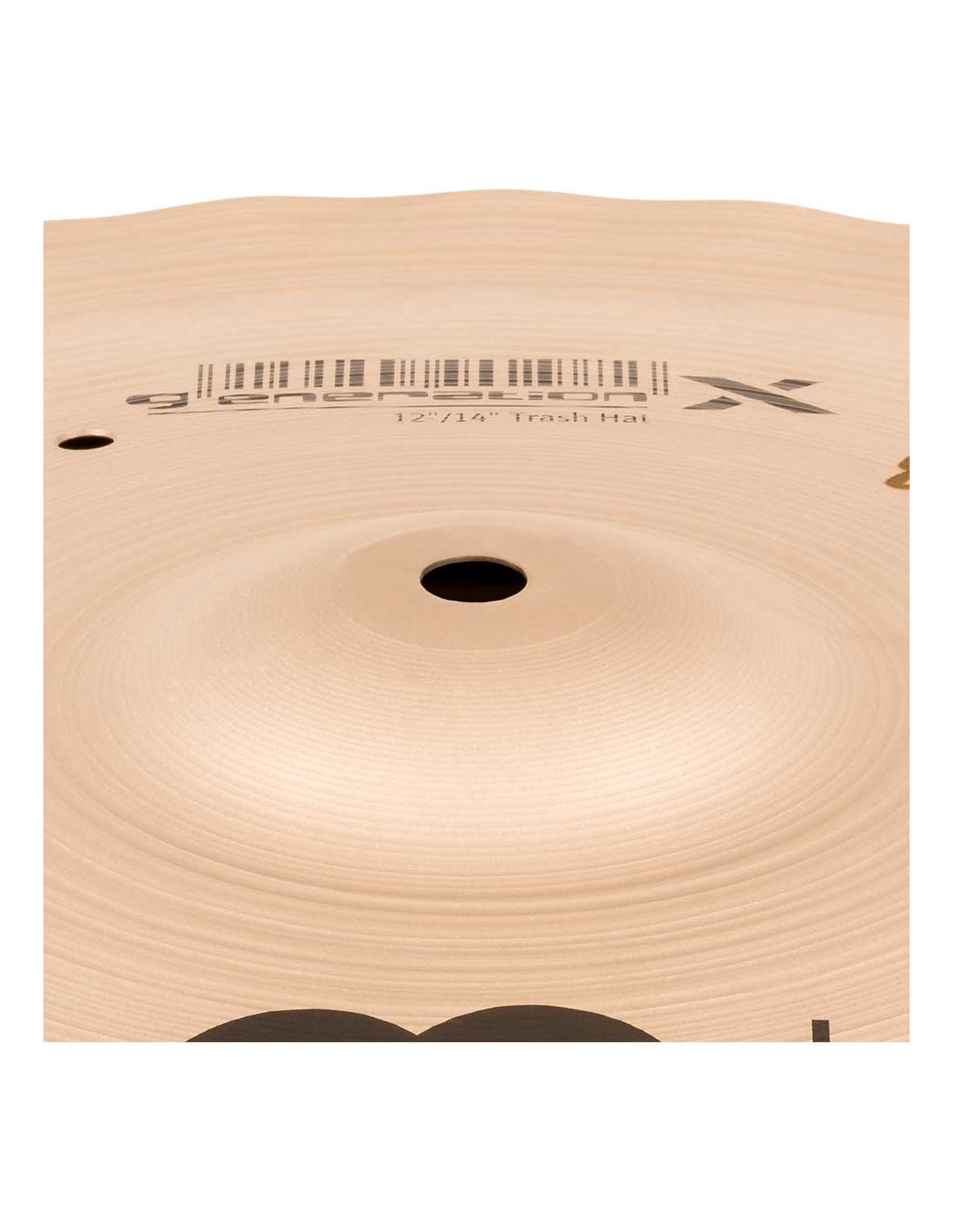 'Trash Hat 12/14''. Serie Gen-X. Die Becken der Serie Gen-X werden in Deutschland aus verschiedenen Legierungen hergestellt. Der Prozess umfasst verschiedene Techniken, sowohl Druck- als auch computergestütztes Hämmern. Die Oberflächenvarianten hängen vom Modell ab und verleihen jedem Becken ein spektakuläres Aussehen und einen besonderen Klang.