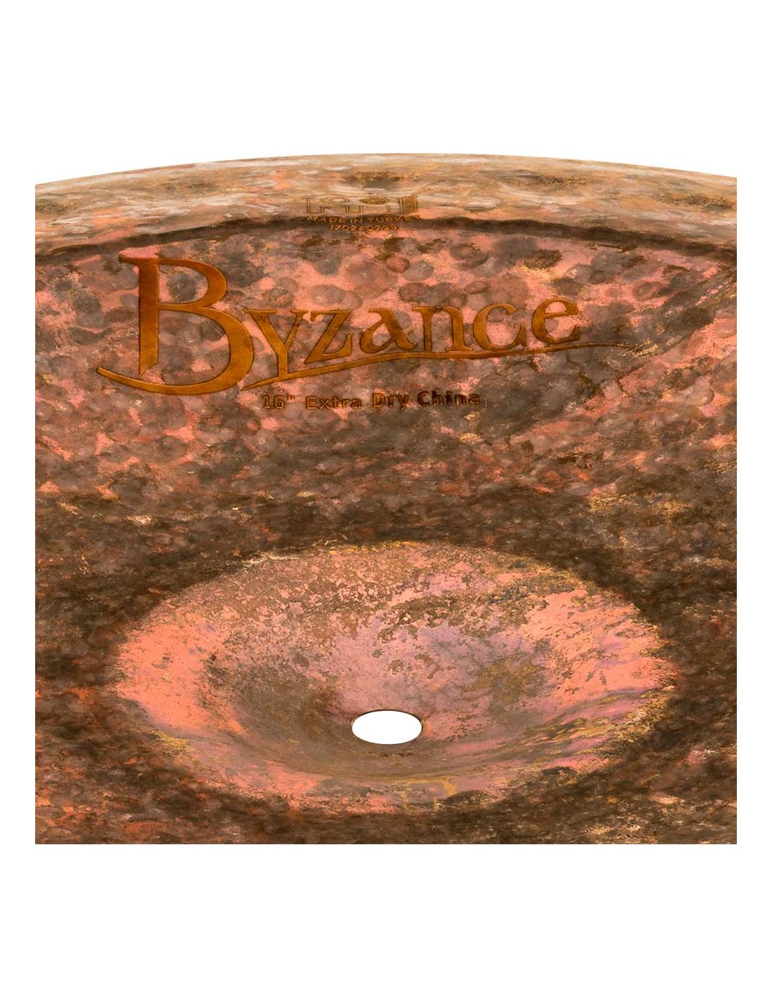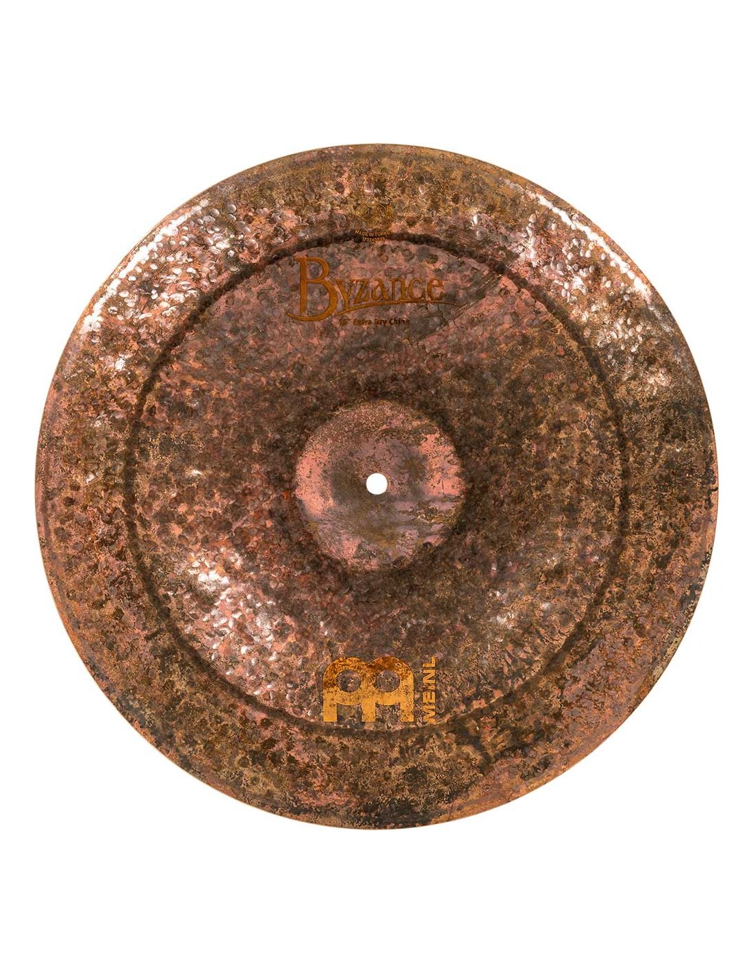 'China 16'', Serie Byzance Extra Dry. Die Becken der Serie Byzance Extra Dry werden in unserer Fabrik in der Türkei von Spezialisten handwerklich hergestellt und respektieren die Tradition im gesamten Prozess. Alle Becken sind aus B20-Bronzelegierung gefertigt. Verschiedene Techniken sind am Prozess beteiligt, sowohl das Hämmern als auch das Drehen. Die nicht gedrehte Oberflächenbearbeitung und die gehämmerte Oberfläche mit größerem Durchmesser zusammen mit dem vollständig gedrehten Boden des Beckens machen die Serie einzigartig. Mit einem explosiven Klang, etwas Trash und wenig Sustain. Diese Becken haben ein völlig einzigartiges Klanguniversum geschaffen.