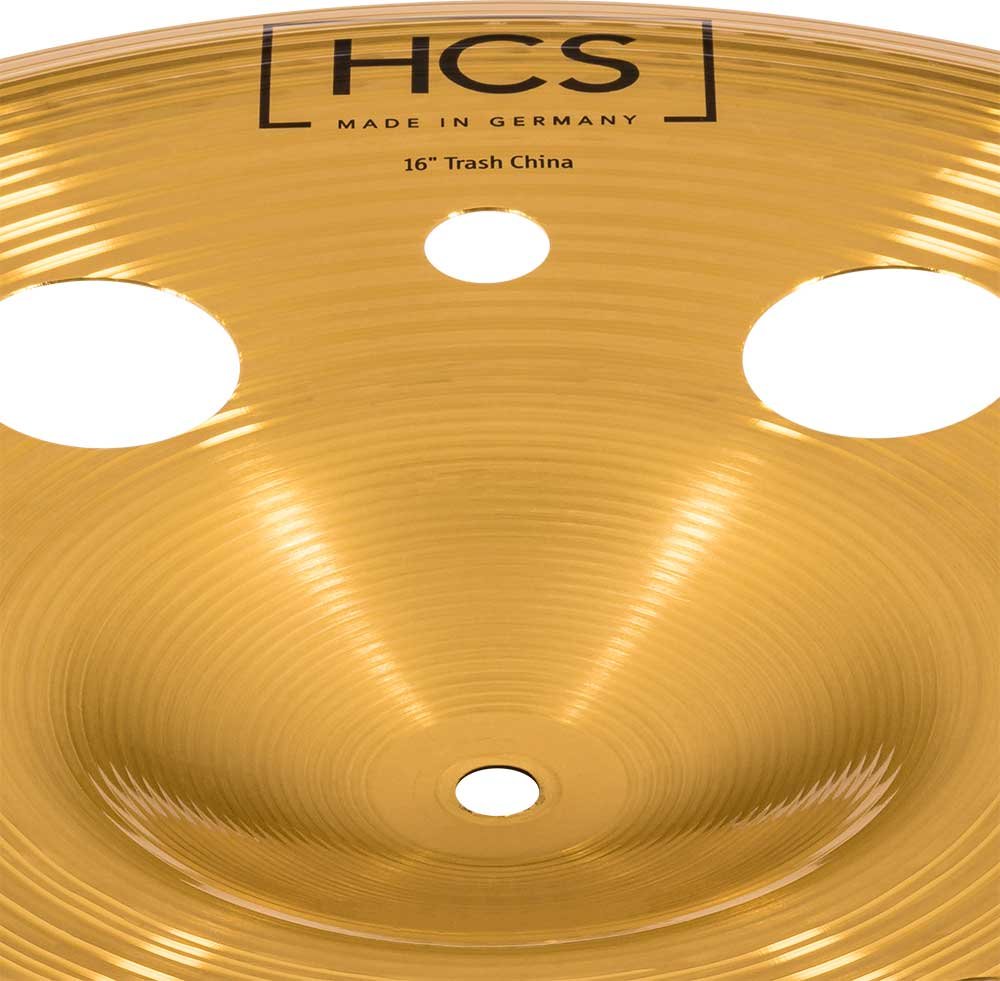 'Trash China 16'', Serie HCS. Die Einsteiger-Serie von MEINL bietet hervorragende Qualität, professionelle Optik und gute Klangeigenschaften zu einem fairen Preis. Alle HCS-Becken sind aus MS63 Messinglegierung gefertigt und perfekt abgestimmt.