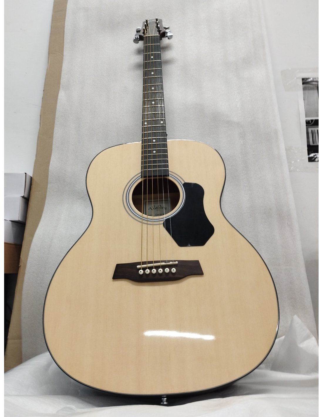 'Akustikgitarre 6 Saiten Serie Standard 400 Korpus: Orchester Decke: Massiv-Fichte Boden und Zargen: Laminierte Mahagoni Hals: Mahagoni, zweiweg Truss Rod Griffbrett und Steg: Palisander Sattel und Steg: 'GRAPH TECH NuBone' Rosette: Selbstklebend Binding: ABS Pickguard: Schwarz Mechaniken: Chrom-Druckguss-Stimmmechaniken Finish: Wasserbasierte Hochglanzlackierung Breite Sattel: 43 cm (1.69'') Breite Schultern: 29,36 cm (11.56'') Taillenumfang: 23,81 cm (9.38'') Breite Hüften: 38,42 cm (15.13'') Tiefe: 10,48 cm (4.13'') Körperlänge: 49,21 cm (19.38'') Mensur: 65 cm (25.6'') Saiten D'ADDARIO EXP11 Gitarre WALDEN Gigbag 'kleine Gebrauchsspuren durch Ausstellung im GeschäftArtikel neu verpackt