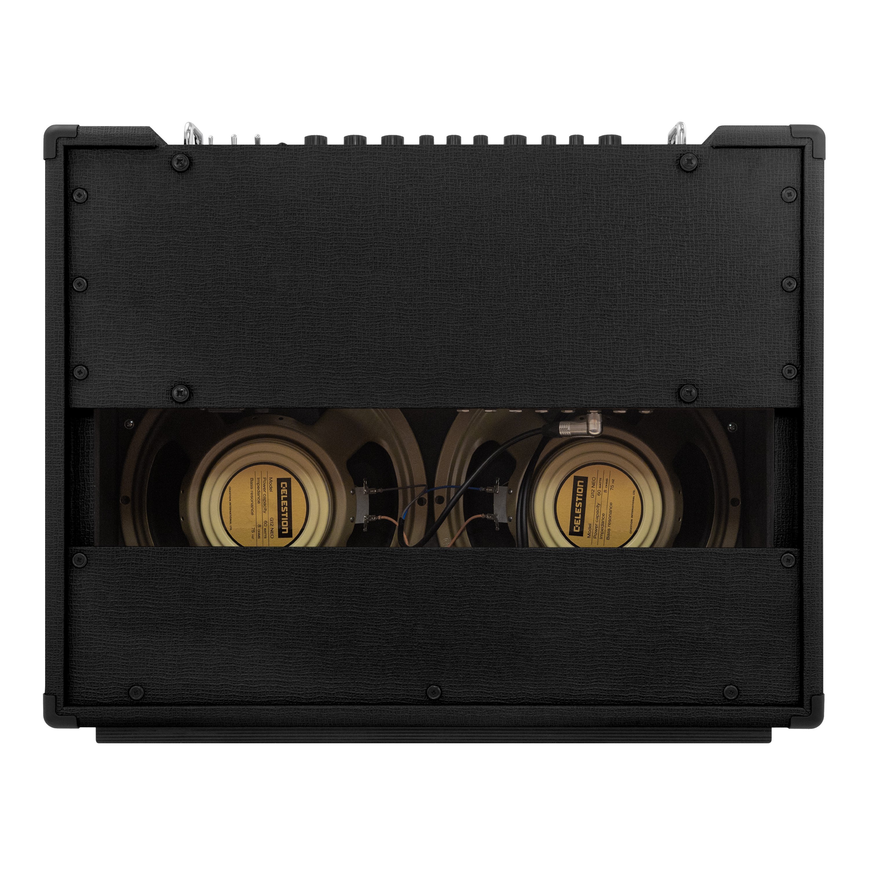 Der gleiche legendäre Verstärker Rockerverb 50C, 18% leichter! Combo für E-Gitarre, komplett röhrenbetrieben. 50W Klasse A/B. Lautsprecher: 2x 12'' Celestion Neo Creamback. Wählbare Leistung 50W/25W. 2 Kanäle. Design ''Pics Only''. Schaltbarer Attenuator und Reverb. Federhall mit ECC81/12AT7-Röhre. Kanal Clean: Regler: Lautstärke, Bässe und Höhen. Kanal Dirty: Regler Gain, Bässe, Mitten, Höhen und Lautstärke. Effektloop. Röhren: 4x ECC83/12AX7 und 2x ECC81/12AT7 Vorstufe, 2x EL34 Leistung. 15 mm Birken-Sperrholz. Abmessungen: 66 x 54 x 30 cm, Gewicht: 31 kg. Maximale Vielseitigkeit.