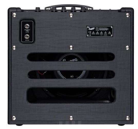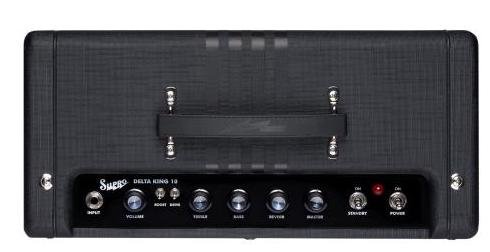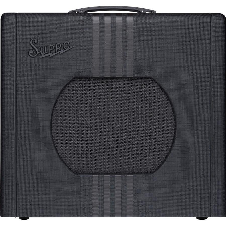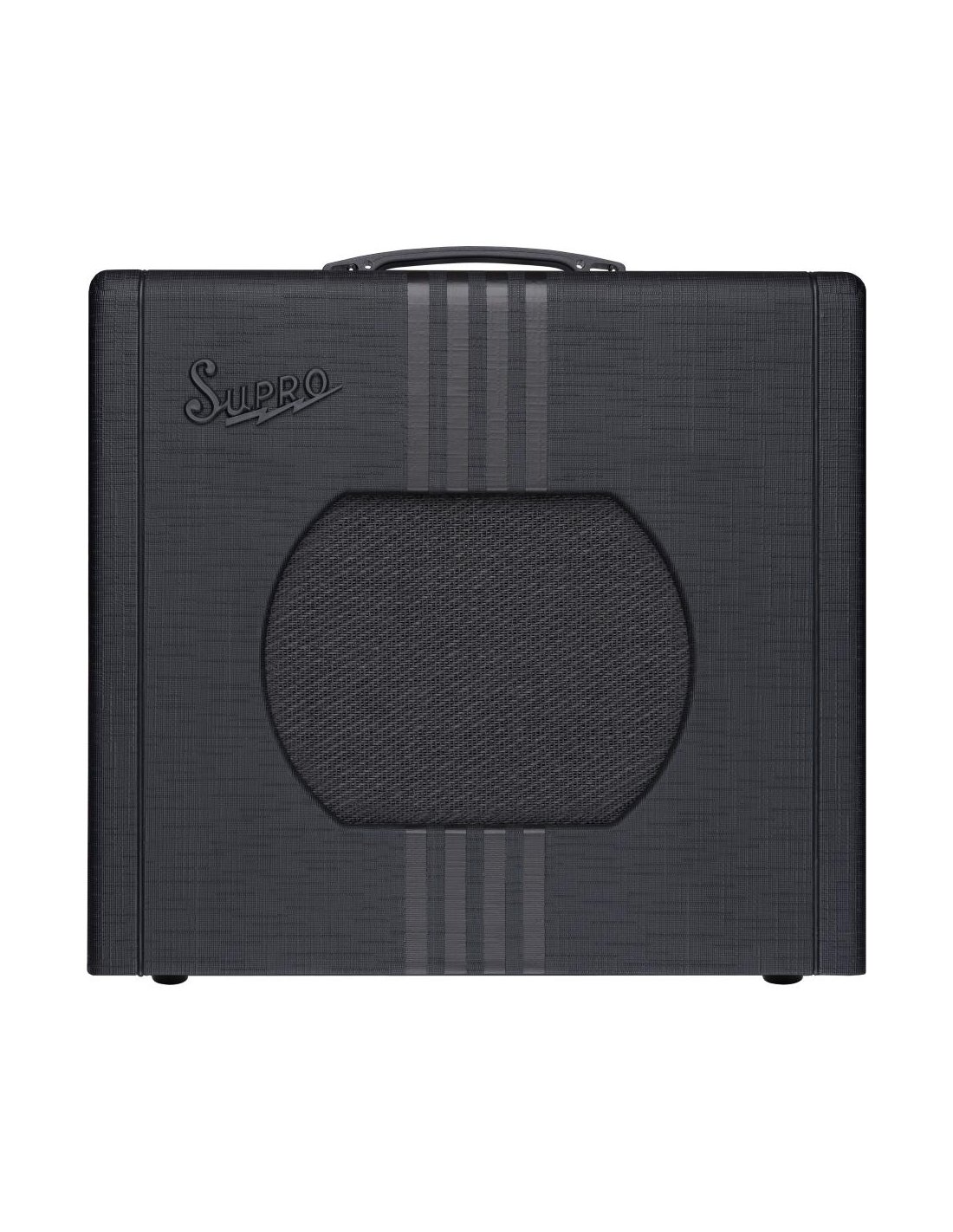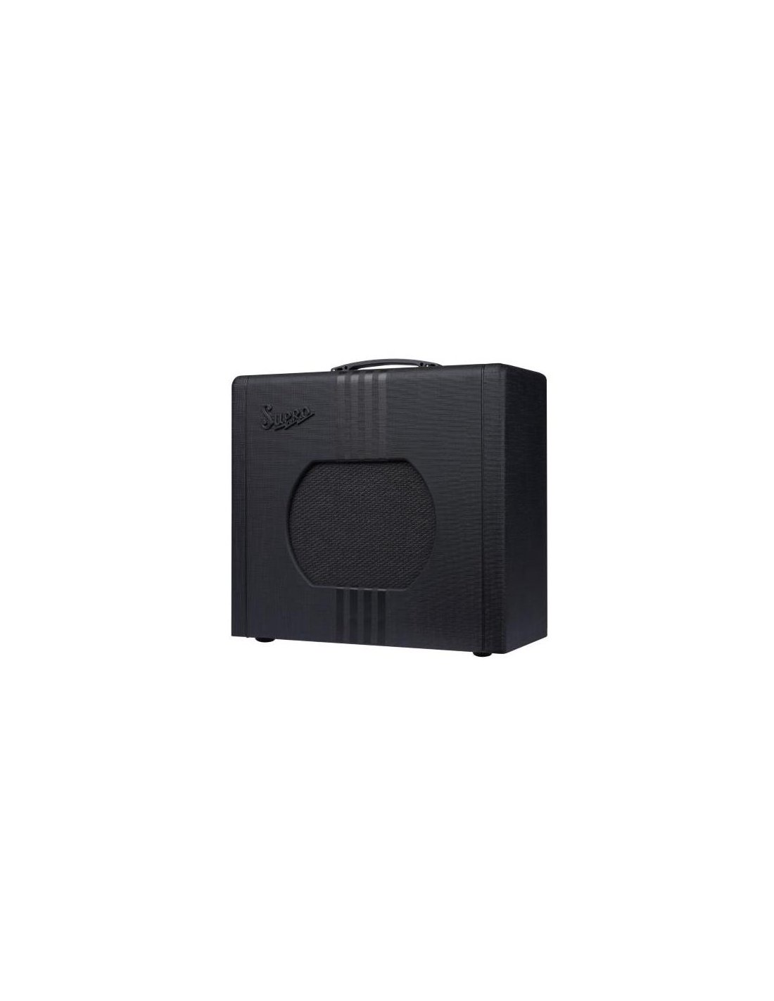 SUPRO DELTA KING 10 BLACK & BLACK ist ein Röhren-Comboverstärker für Gitarre mit 5W Leistung in Klasse A und einem 10"-Lautsprecher. Die technischen Merkmale umfassen den benutzerdefinierten Supro DK10 Lautsprecher mit 10", eine 12AX7 Vorstufenröhre, eine 6V6 Endstufenröhre, eine FET-Boost-Funktion, den High-Gain-Modus Pigtronix FAT, aktivierbare Drive- und Boost-Funktionen über einen Schalter, sowie die Regler für Lautstärke, Höhen, Bässe, einen benutzerdefinierten analogen Federhall und die Master-Lautstärkeregelung.