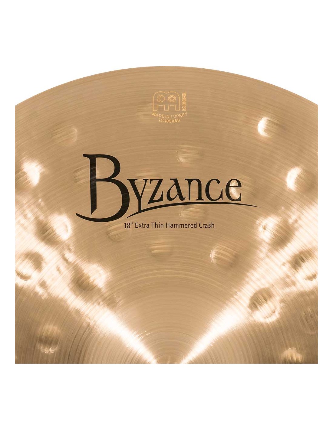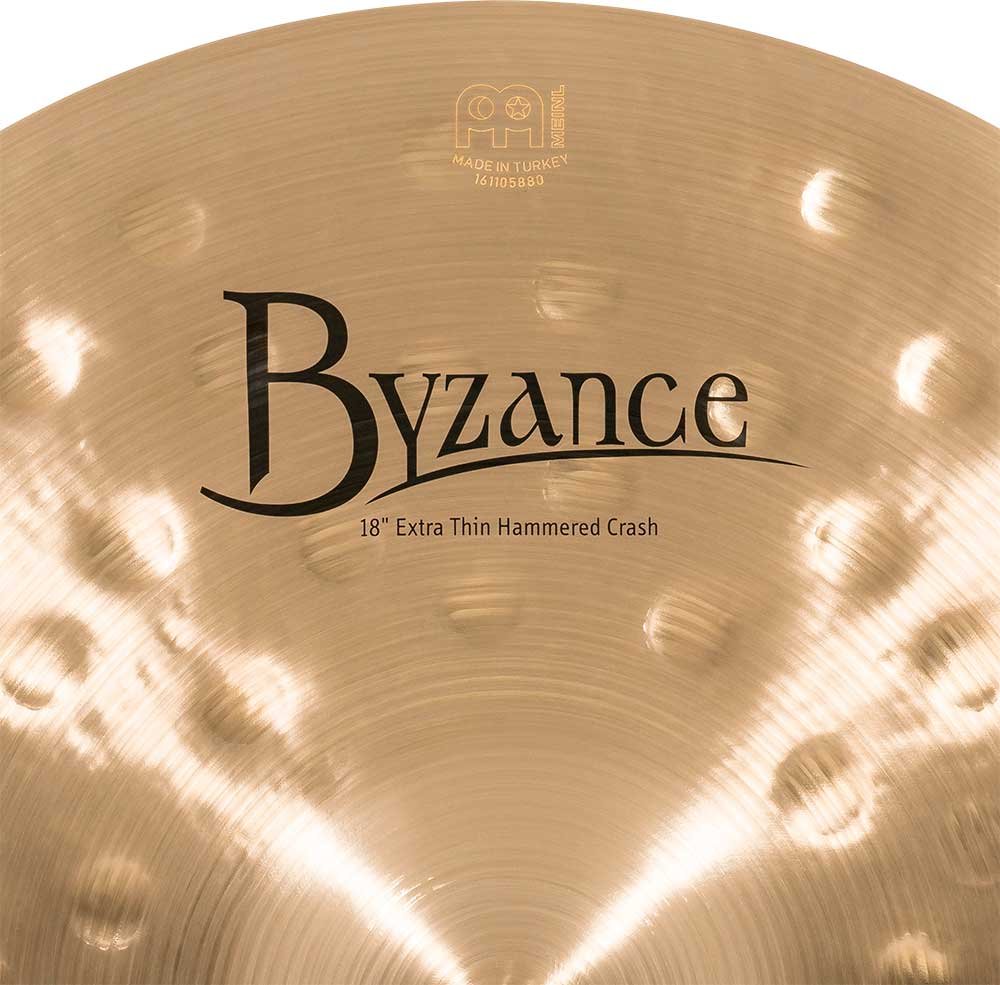 'Crash 18'''' Extra Dünn Geschlagen, Serie Byzance Traditional. Die Becken der Serie Byzance Traditional werden in unserer Fabrik in der Türkei von Spezialisten handgefertigt und respektieren die Tradition im gesamten Prozess. Alle Platten werden aus B20 Bronzelegierungsplatten hergestellt. Verschiedene Techniken sind am Prozess beteiligt, sowohl das Hämmern als auch das Drehen. Die traditionelle Verarbeitung verleiht der Serie den klassischen Klang des türkischen Beckens, den wir seit über einem Jahrhundert hören.