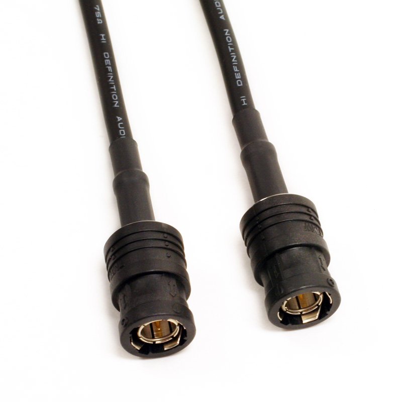 Digitales Kabel, 75 Ohm, BNC - BNC 1 m Digitales Kabel, 75 Ohm, BNC - BNC Tajimi BNCS Push-Pull BNC <> Tajimi BNCS Push-Pull BNC, schwarze verchromte Hülle. Mogami 2964 75 Ohm Koaxialkabel, schwarz. Die "Mogami by Lake People" Kabel werden mit höchster Hingabe in Japan hergestellt und mit größter Präzision in Deutschland montiert. Das Koaxialkabel 2964 von Mogami hat einen Durchmesser von nur 4,8 mm und ist extrem flexibel. Die technischen Parameter sind speziell für die Übertragung von hochfrequenten Word Clock, MADI und Videosignalen ausgelegt. Die Impedanz von 75 Ohm wird mit einer Toleranz von nur 10% garantiert. Eine doppelte spiralförmige Abschirmung bietet einen äußerst effektiven Schutz gegen Störungen. Alle montierten BNC-Kabel sind mit Tajimi One Touch Push Pull Steckverbindern ausgestattet.