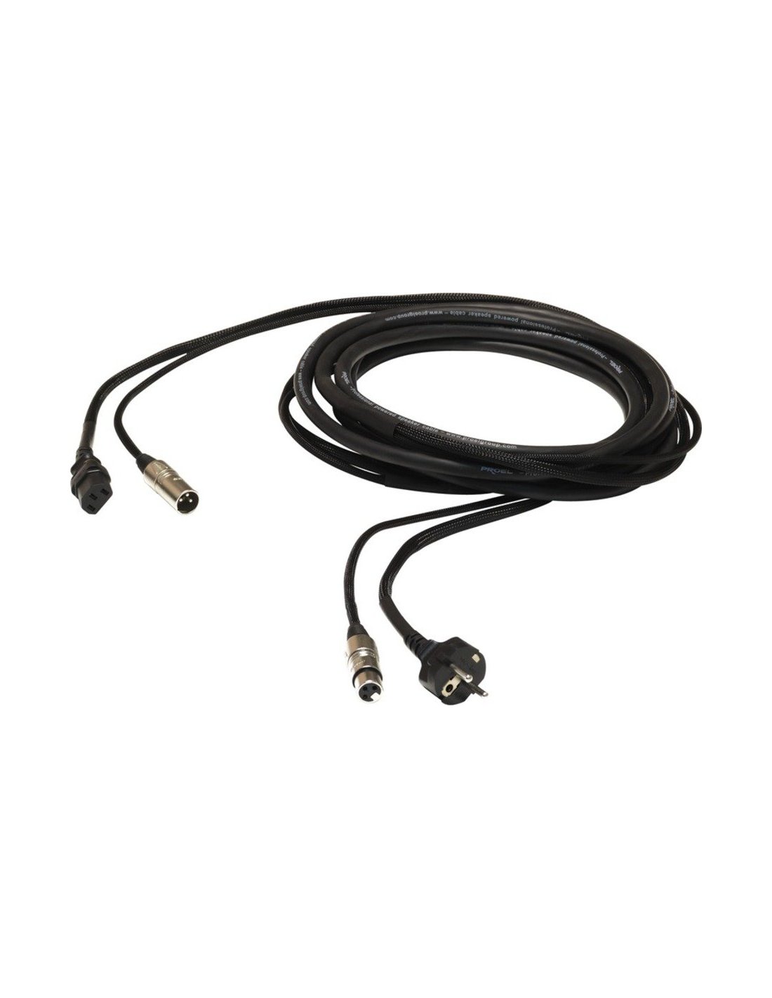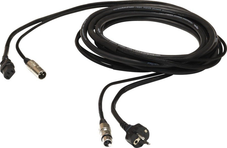 Der Proel PH100LU5 ist ein Kabel zum Anschluss von hochwertigen aktiven Lautsprechern: Es ist an einem Ende mit einem Schuko-Stecker 6A ausgestattet, der mit einem 3-poligen XLR-Buchse verbunden ist, und am anderen Ende mit einer Standardsteckdose mit einem 3-poligen XLR-Stecker.