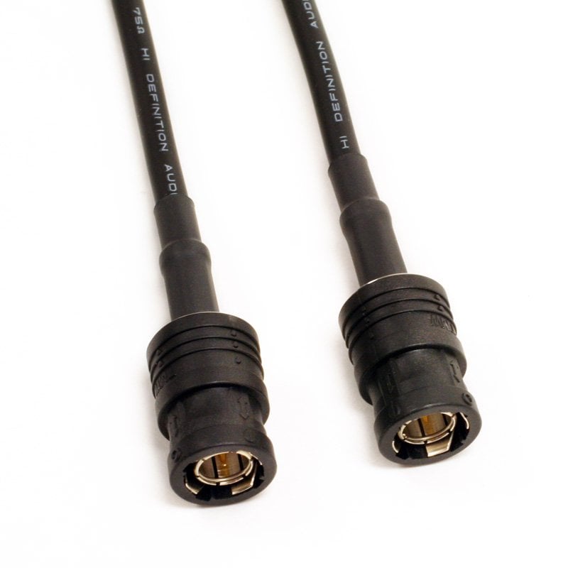 Digitales Kabel, 75 Ohm, BNC - BNC 0,5 m Digitales Kabel, 75 Ohm, BNC - BNC Tajimi BNCS Push-Pull BNC <> Tajimi BNCS Push-Pull BNC, schwarze verchromte Hülle. Mogami 2964 75 Ohm Koaxialkabel, schwarz. Die "Mogami by Lake People" Kabel werden mit höchster Hingabe in Japan hergestellt und mit größter Präzision in Deutschland montiert. Das Koaxialkabel 2964 von Mogami hat einen Durchmesser von nur 4,8 mm und ist extrem flexibel. Die technischen Parameter sind speziell für die Übertragung von hochfrequenten Word Clock, MADI und Videosignalen ausgelegt. Die Impedanz von 75 Ohm wird mit einer Toleranz von nur 10% garantiert. Eine doppelte spiralförmige Abschirmung bietet einen äußerst effektiven Schutz gegen Störungen. Alle montierten BNC-Kabel sind mit Tajimi One Touch Push Pull Steckverbindern ausgestattet.