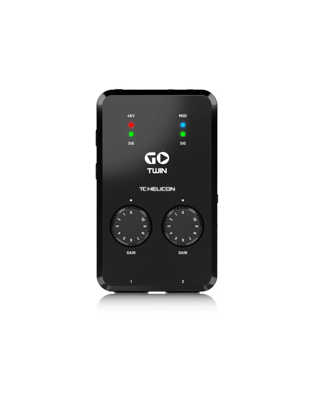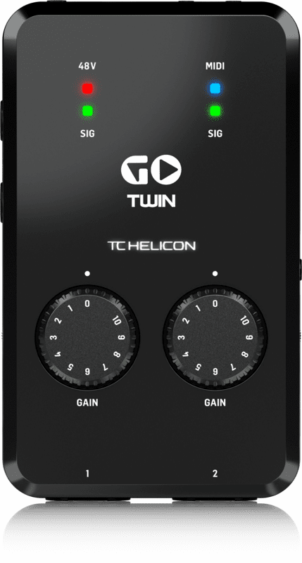 TC Helicon Go Twin ist ein tragisches Audio-Interface für mobile Geräte wie iOS, Android, Mac und PC. Es verfügt über zwei XLR-Combo-Jack-Eingänge für Mikrofone, Line- und Instrumenteneingänge, 2 I/O-Jacks von 2,5 mm für 5-polige MIDI-Geräte, einen Kopfhörerausgang, zwei preisgekrönte Midas-Vorverstärker, die maximale Signalintegrität und Phantomspannung gewährleisten. Es integriert sich mit den TC-Helicon-Apps für mobile Geräte und iOS.