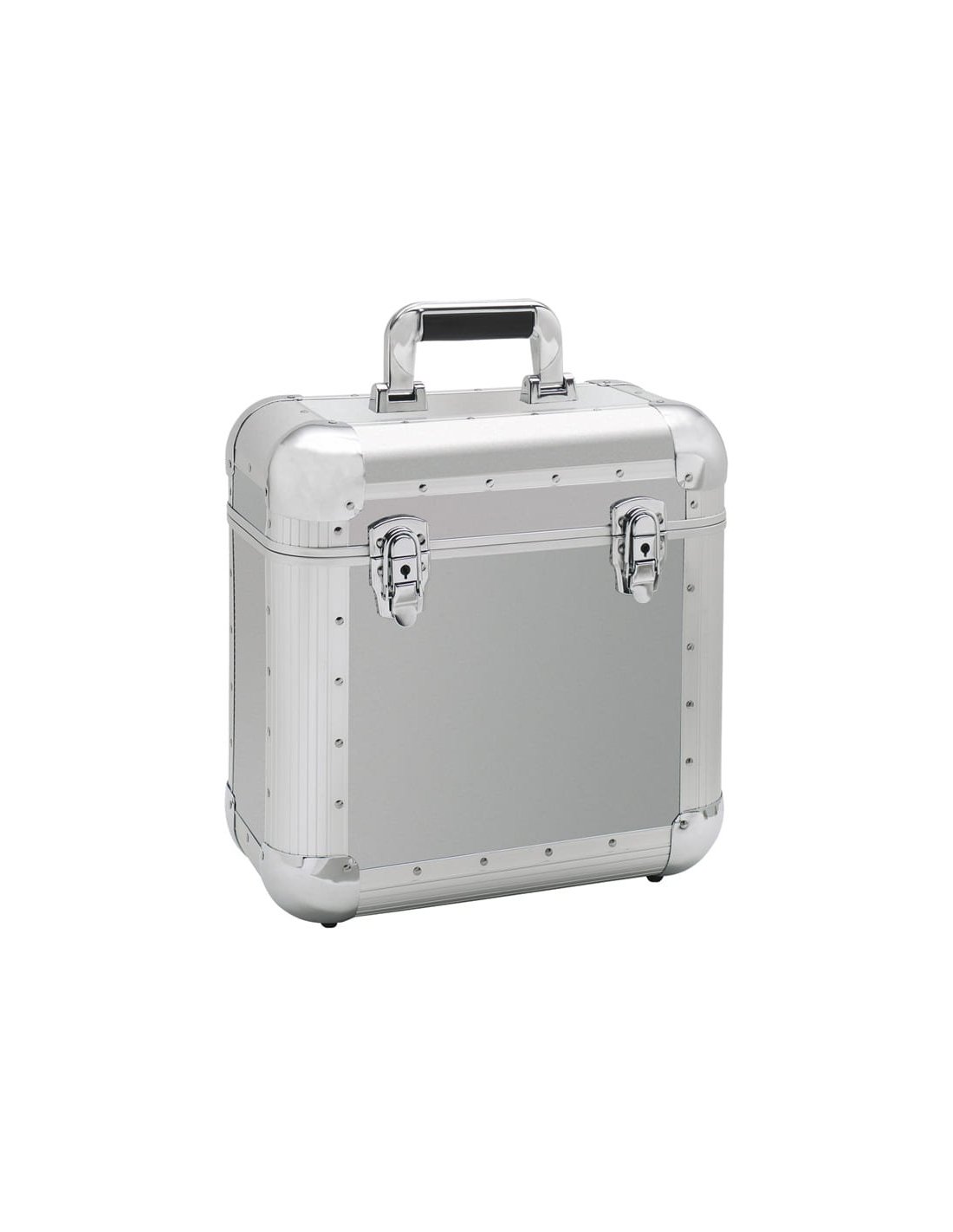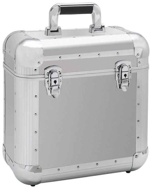 RELOOP 60 RECORD CASE SILBER. Der Plattenkoffer aus beschichtetem Sperrholz, der bis zu 60 Schallplatten aufnehmen kann. Ausgestattet mit einem Griff, Schnappschlössern mit Schlüssel, Innenpolsterung und abnehmbarem Deckel.
