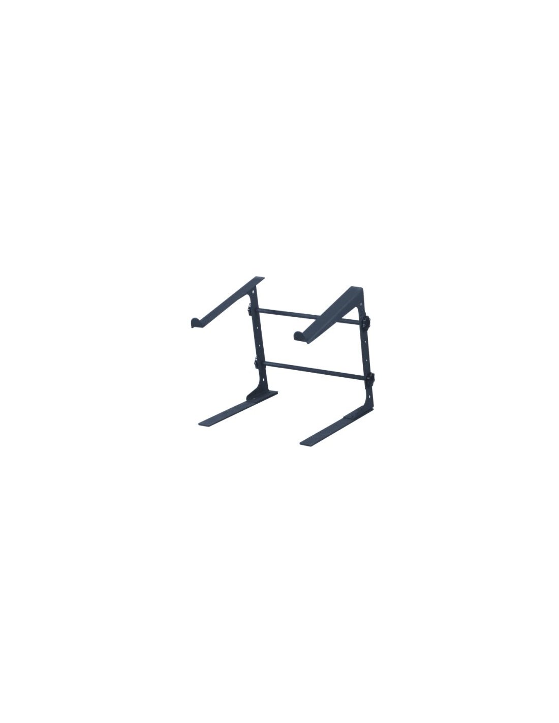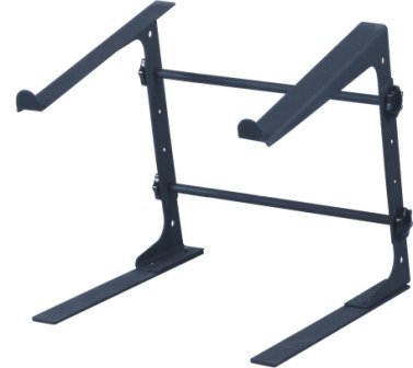 APEXTONE LS-01. Tisch-Laptopständer für DJs, aus Metall gefertigt und höhenverstellbar mit gummierten, rutschfesten Ablagearmen.