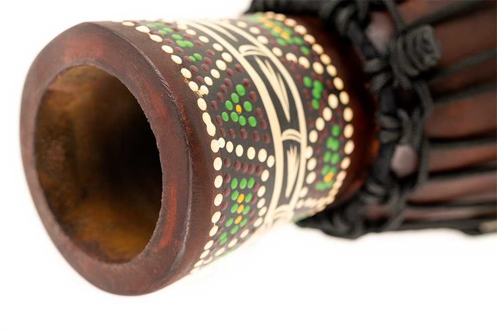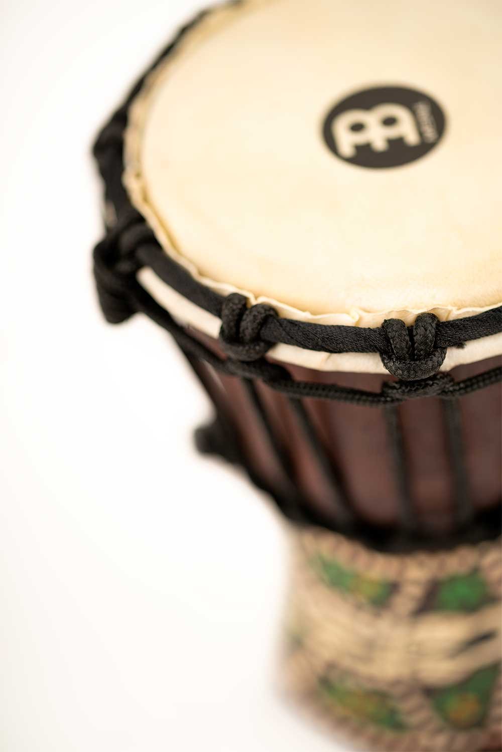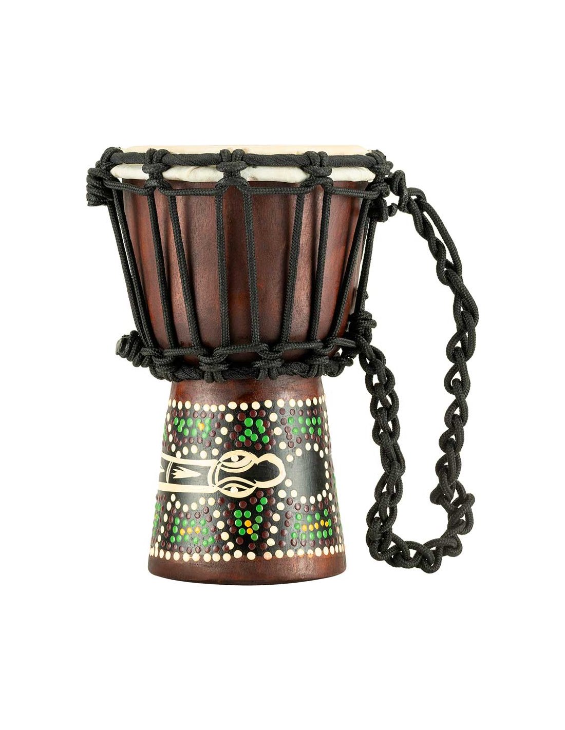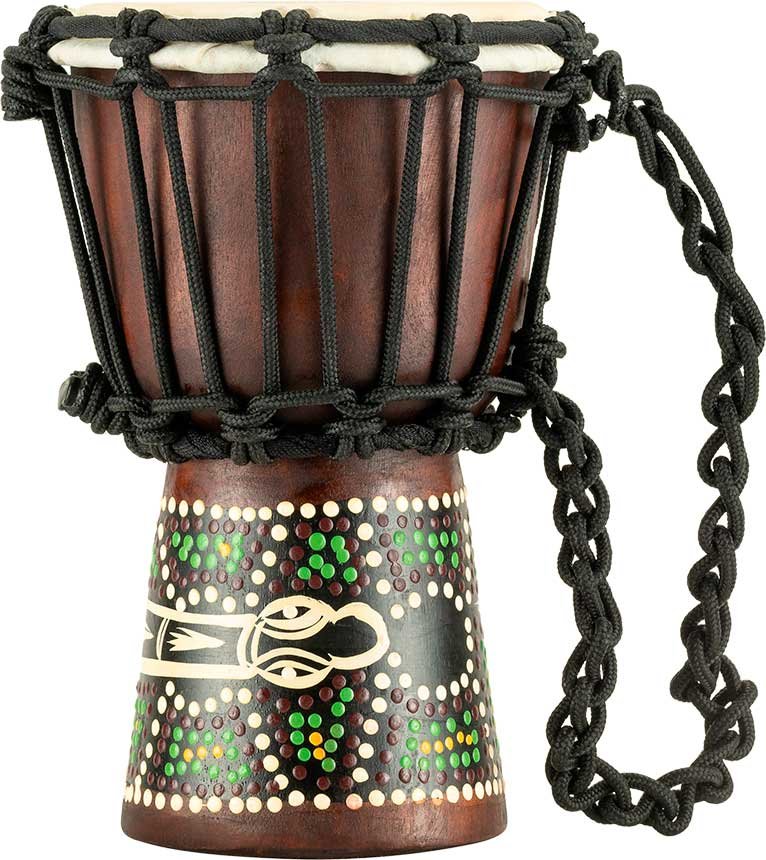 'Holz-Djembe Größe 4 1/2''''. Ausgestattet mit von Hand ausgewählten Ziegenlederköpfen und Nylon-Saiten für eine optimale Stimmung. Die wunderschönen Djembes der Meinl Headliner-Serie zeichnen sich durch ihre traditionelle und exotische Grafik aus. 100% sorgfältig von Hand gefertigt nach den hohen Qualitätsstandards von Meinl. .