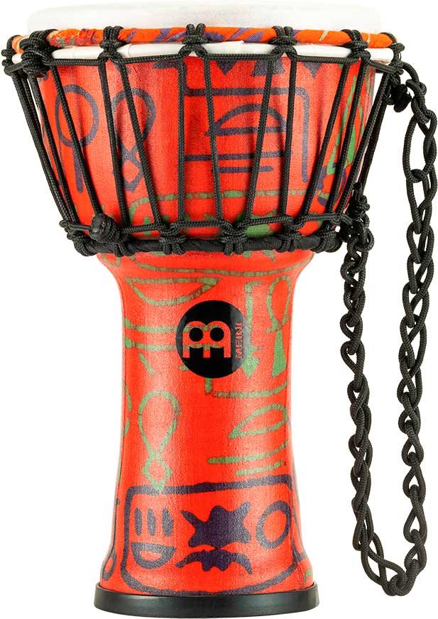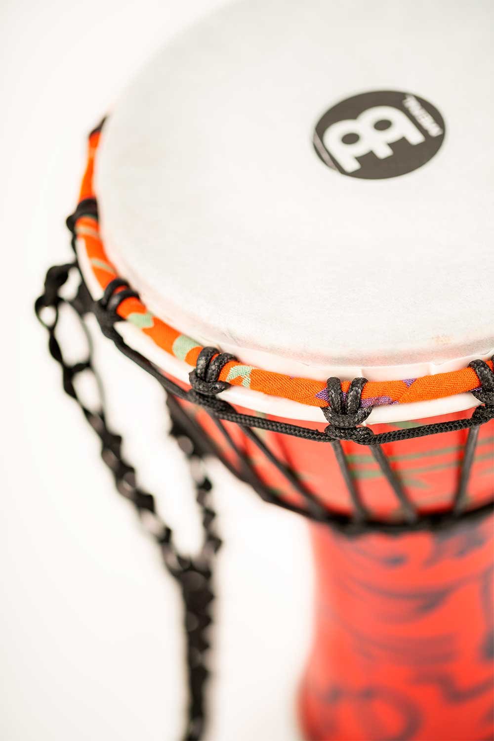 'Mini Djembe JRD-PS. Die Meinl Junior Djembe mit nur 7'' ist das perfekte Instrument, um überallhin mitgenommen zu werden. Diese kompakte Djembe bietet einen großartigen Klang und einen ausgezeichneten Ton, ideal für Treffen mit Freunden oder Rhythmusunterricht. Ihr Gehäuse und die 100% leichten synthetischen Patches machen sie perfekt für das Spielen im Freien. Ihre 14 vorgespannten Saiten halten die Stimmung besser.