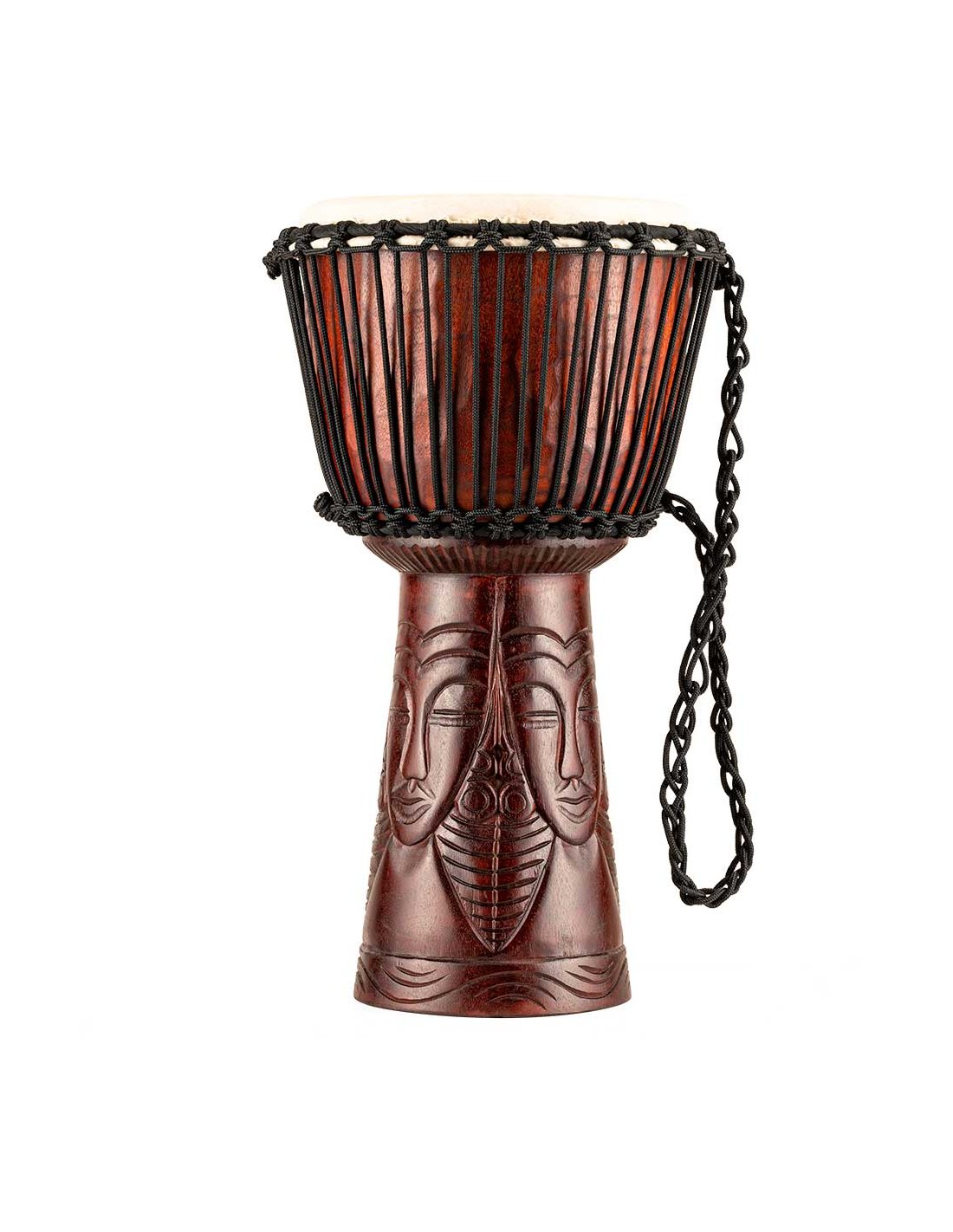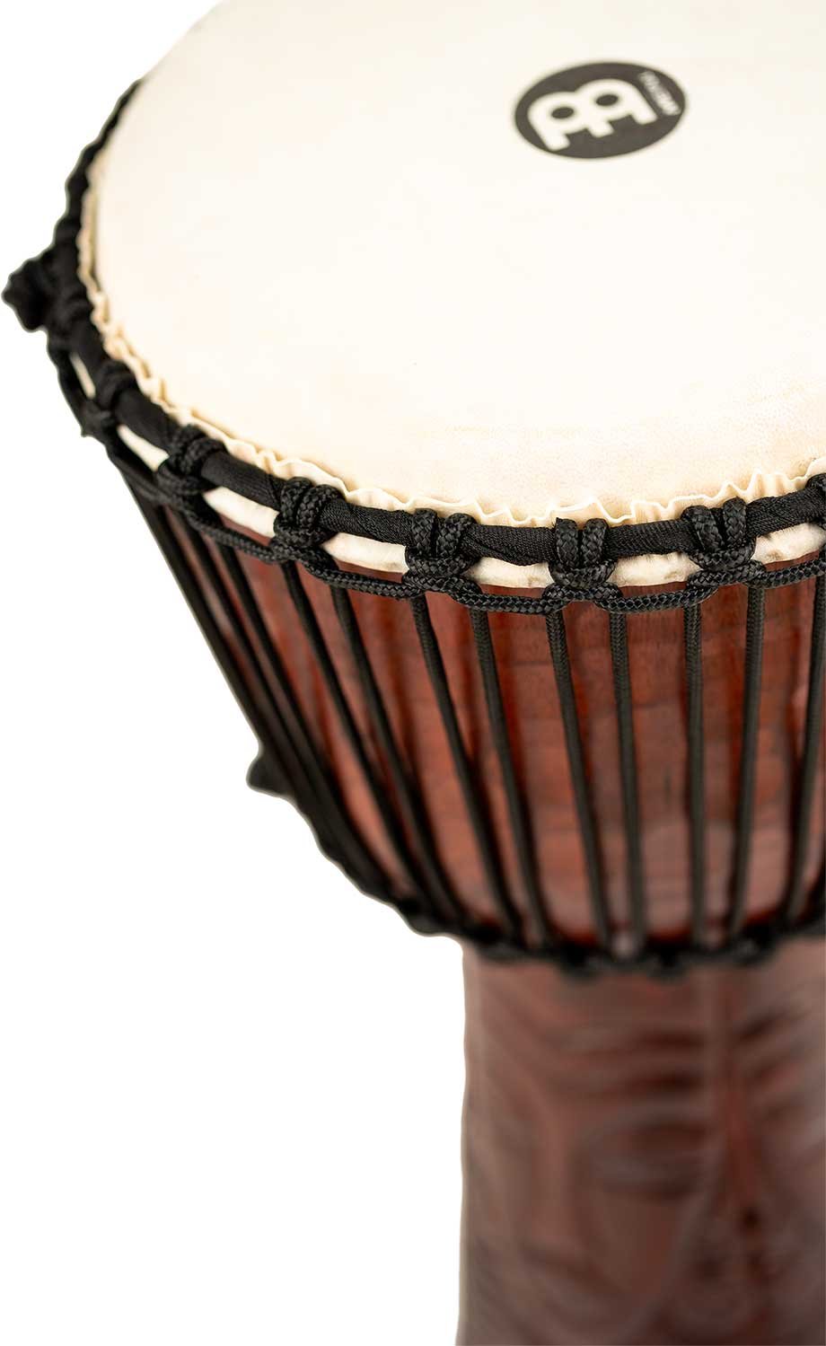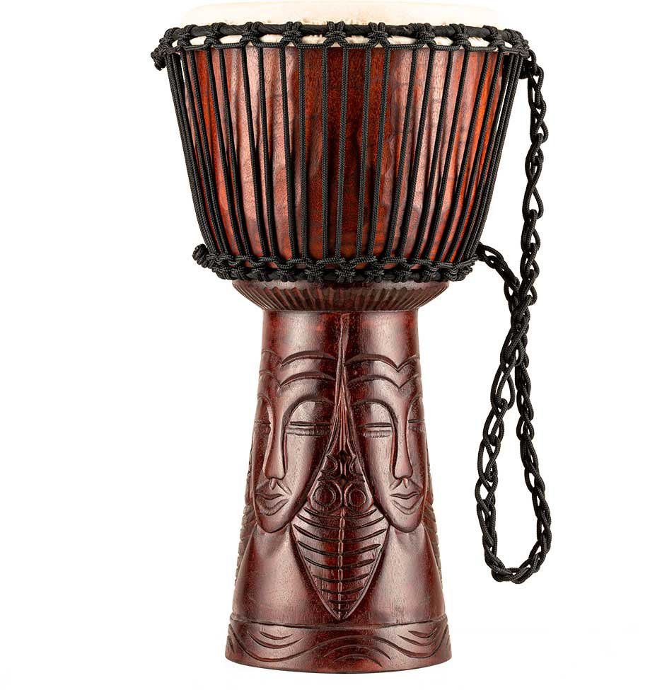 'Professionelle Djembe aus Holz, Größe 10''''. Ausgestattet mit handverlesenen Ziegenlederköpfen und Nylon-Saiten für eine optimale Stimmung. Die wunderschönen Djembes der Professionelle-Serie von Meinl zeichnen sich durch traditionell und exotisch handgeschnitzte Grafiken aus einem Stück Massivholz aus.