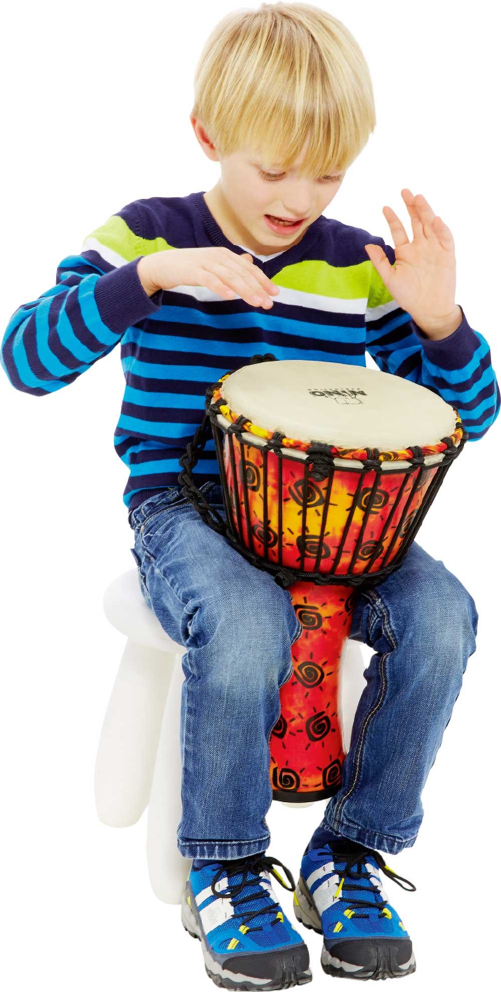 Die neue Djembe-Linie mit dem Nino-Saitenstimm-System besteht aus patentiertem synthetischem Material, das es uns ermöglicht, eine extrem leichte Djembe zu schaffen. Aus diesem Grund sind diese Trommeln eine ausgezeichnete Wahl für Kinder, insbesondere in Schulen und Percussion-Ensembles. Die handverlesene Ziegenledermembran erzeugt einen warmen Klang, der typisch für die traditionelle Djembe ist. Die Version mit synthetischem Leder macht sie perfekt für den Einsatz im Freien, da sie nicht unter den Auswirkungen des Wetters leidet.