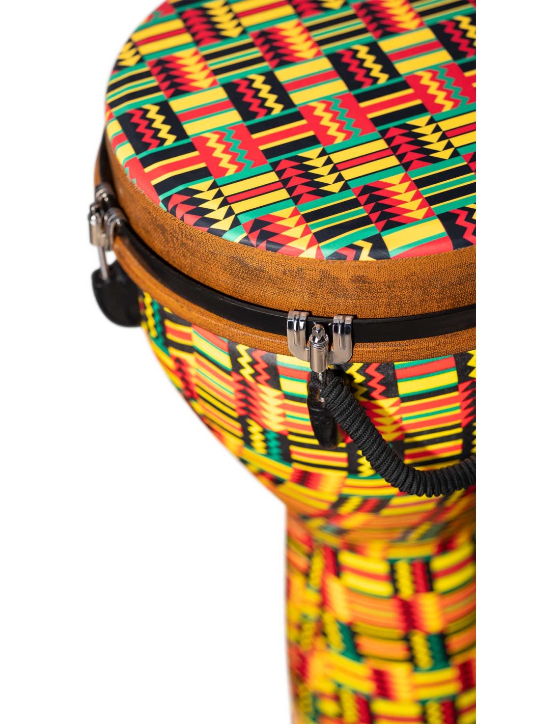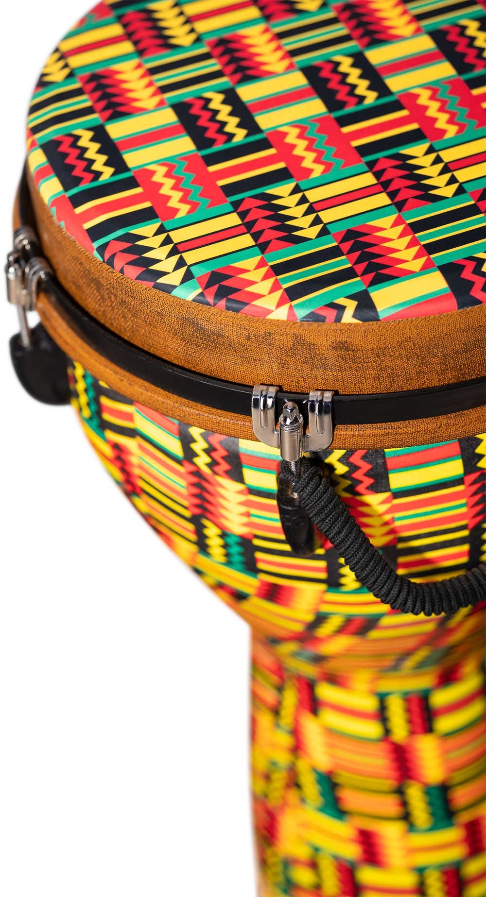 Creato prendendo un tono basso profondo con una risonanza libera, das Meinl Jumbo Djembe versucht, große Klänge mit wetterfesten Materialien zu erzeugen. Erhältlich in verschiedenen Durchmessern, produzieren diese Djembés ein außergewöhnlich breites Spektrum an Tönen, von tiefen, vollen Bässen bis hin zu hohen Tönen. Das 100% synthetische Patch und das Gehäuse sind unempfindlich gegenüber Temperatur- oder Feuchtigkeitsänderungen und kombiniert, um schneidende und klare Töne sowie kräftige Bässe zu bieten. Die leichte Konstruktion macht dieses Djembe zu einem idealen Reisebegleiter. Ein benutzerfreundliches mechanisches Stimm-System wird durch hochbelastbares Hardware verankert, um einen konsistenten und zuverlässigen Klang zu gewährleisten. Ob zu Hause, auf der Bühne oder im Studio, das Jumbo Djembe ist auch perfekt für den Einsatz in Klassenräumen und Workshops.