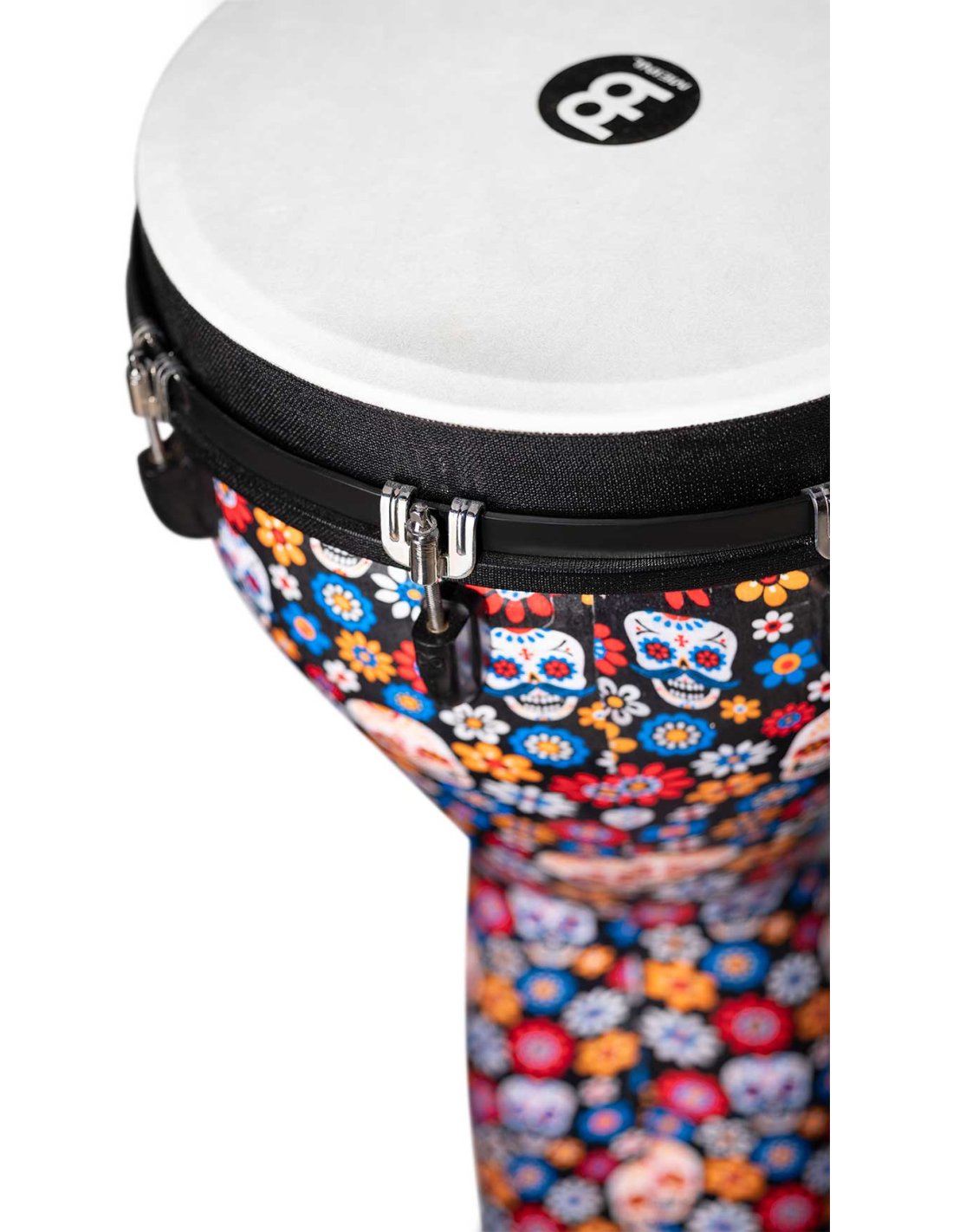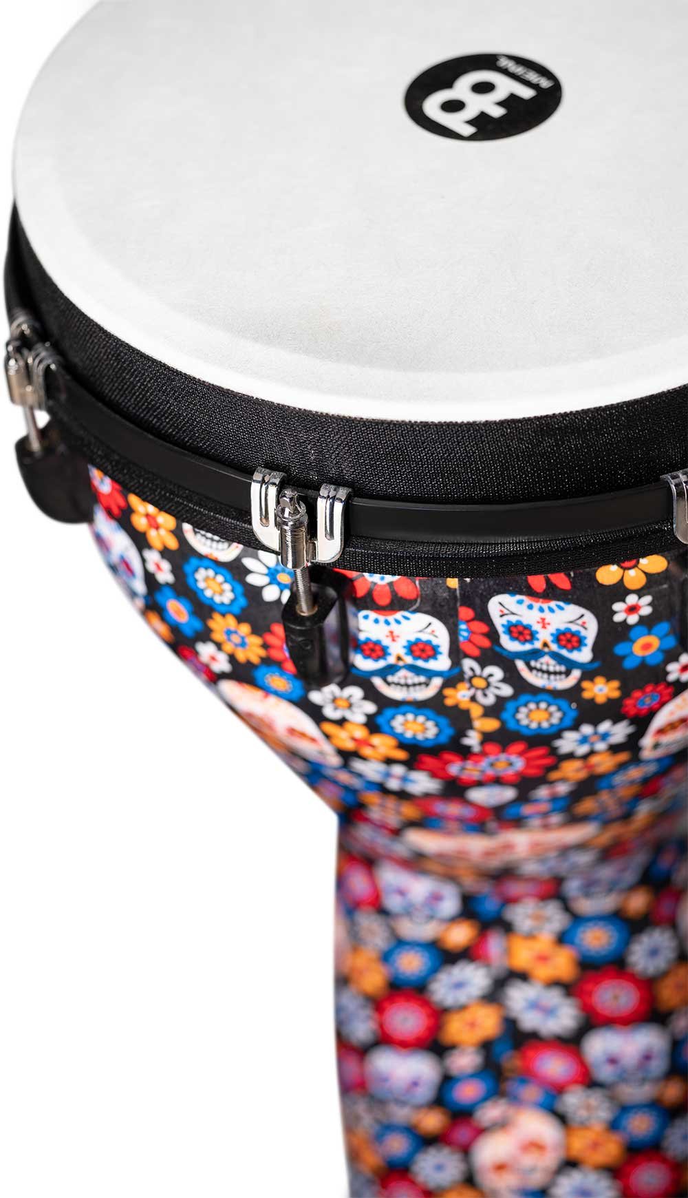 Creato prendendo un tono basso profondo con una risonanza libera, das Meinl Jumbo Djembe versucht, große Klänge mit wetterfesten Materialien zu erzeugen. Erhältlich in einer Vielzahl von Durchmessern, produzieren diese Djembés ein außergewöhnlich breites Spektrum an Tönen, von tiefen, vollen Bässen bis hin zu hohen Tönen. Das 100% synthetische Patch und das Gehäuse sind unempfindlich gegenüber Temperatur- oder Feuchtigkeitsänderungen und kombiniert, um scharfe und klare Höhen sowie kräftige Bässe zu bieten. Die leichte Konstruktion macht dieses Djembe zu einem idealen Reisebegleiter. Ein benutzerfreundliches mechanisches Stimm-System wird durch hochbelastbares Hardware verankert, um einen konsistenten und zuverlässigen Klang zu gewährleisten. Ob zu Hause, auf der Bühne oder im Studio, das Jumbo Djembe ist auch perfekt für den Einsatz in Klassenräumen und Workshops.