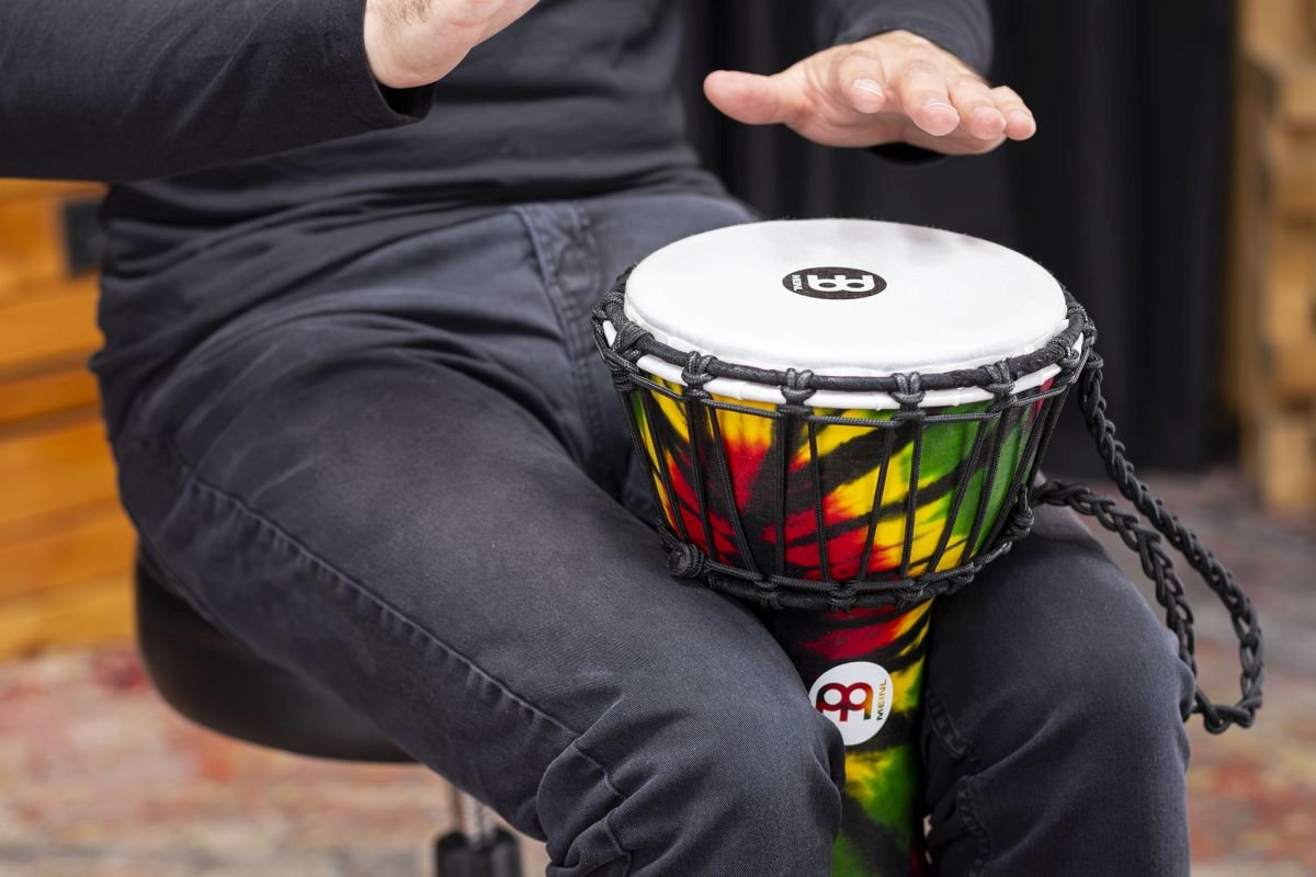 Tragbar mit kraftvollem Klang, außergewöhnlichem Ton und leichtem synthetischem Korpus ist das MEINL JR. Djembe das perfekte Instrument, um es bei jeder Gelegenheit mitzunehmen. Von Outdoor-Treffen mit Freunden bis hin zu spontanen Jam-Sessions oder dem Unterrichten von Rhythmus an andere, sind diese kompakten Djembe perfekt. Die synthetische Haut ist mit vorgespannten Saiten befestigt, um die Stimmung besser zu halten. Ideal für jedes Alter oder Fähigkeitsniveau.Eigenschaften:Perfekt in jeder SituationKompakte Größe und leichtes GewichtVorgespannten SaitenDeutliche Slaps und tiefer Bass-Ton100% synthetische Haut und Korpus sind perfekt für den Outdoor-EinsatzDurchmesser Haut: 7" (18 cm)Höhe: 12" (32 cm)Farbe: Tie Dye