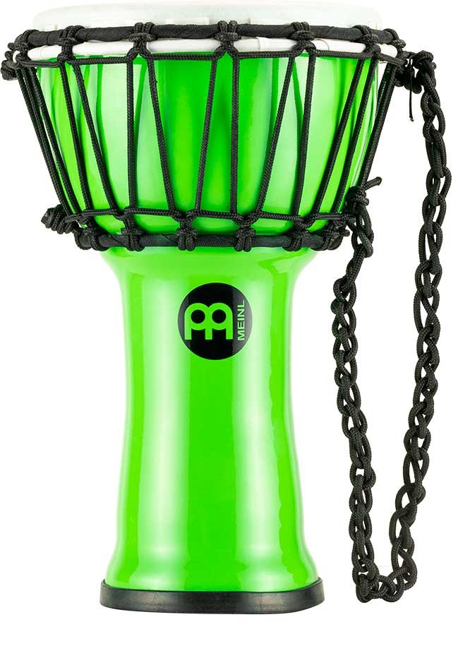 'Mini Djembe JRD-G. Die Meinl Junior Djembe mit nur 7'' ist das perfekte Instrument, um es überallhin mitzunehmen. Diese kompakte Djembe bietet einen großartigen Klang und einen ausgezeichneten Ton, ideal für Treffen mit Freunden oder Rhythmusunterricht. Ihr Gehäuse und die 100% leichten synthetischen Patches machen sie perfekt für das Spielen im Freien. Ihre 14 vorgespannten Saiten halten die Stimmung besser.
