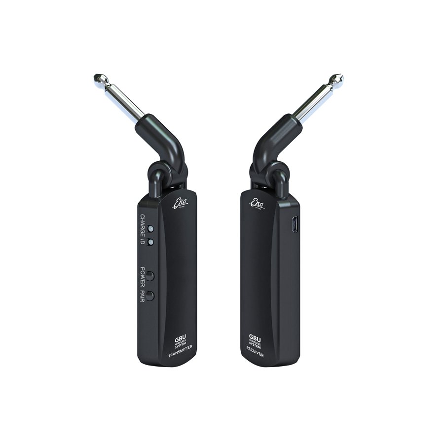 EKO GBU WIRELESS SYSTEM ist ein Wireless Sender/Empfänger-Kit für E-Gitarre, Akustikgitarre, E-Bass und Ukulele. Die technischen Merkmale umfassen eine Übertragung im 2,4 GHz-Band, eine 24-Bit/48 kHz Umwandlung mit 105 dB Dynamik, eine Frequenzantwort von 20 Hz-20 kHz, 4 wählbare Kanäle, eine Latenz von weniger als 6 ms, eine Reichweite von 30 m ohne Hindernisse, schwenkbare Klinkenstecker mit einem Bewegungsspielraum von 300°, bis zu 5 Stunden Betriebsdauer mit einer einzigen Ladung, integrierter Lithium-Akku. Enthält ein doppelt USB-Kabel zum Aufladen