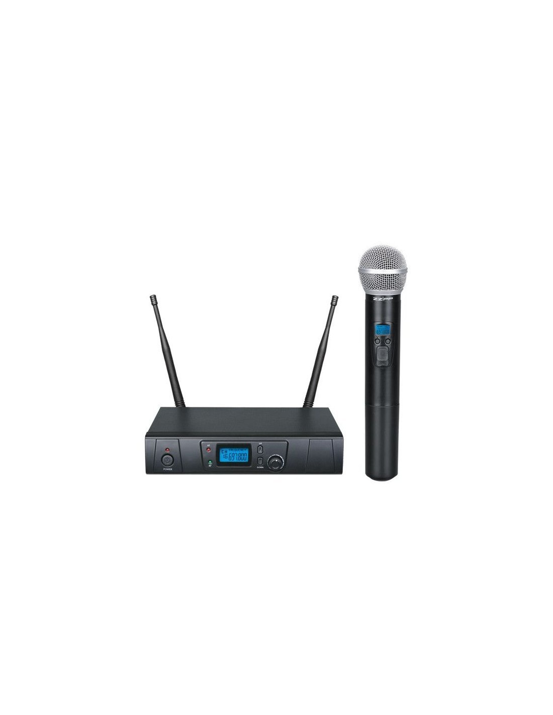 ZZIPP TXZZ600 Handmikrofon UHF 16 Kanäle. Das ZZIPP TXZZ600 Handmikrofon UHF 16 Kanäle ist ein drahtloses UHF-Handmikrofon mit 16 Kanälen und 1 Mikrofon. Es umfasst einen Empfänger mit doppelter Antenne, Lautstärkeregler und Display.
