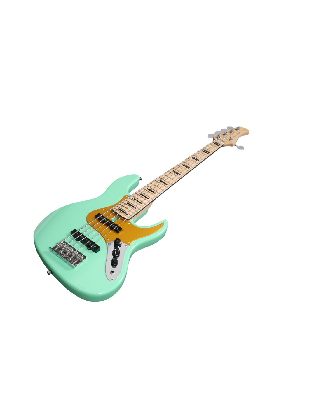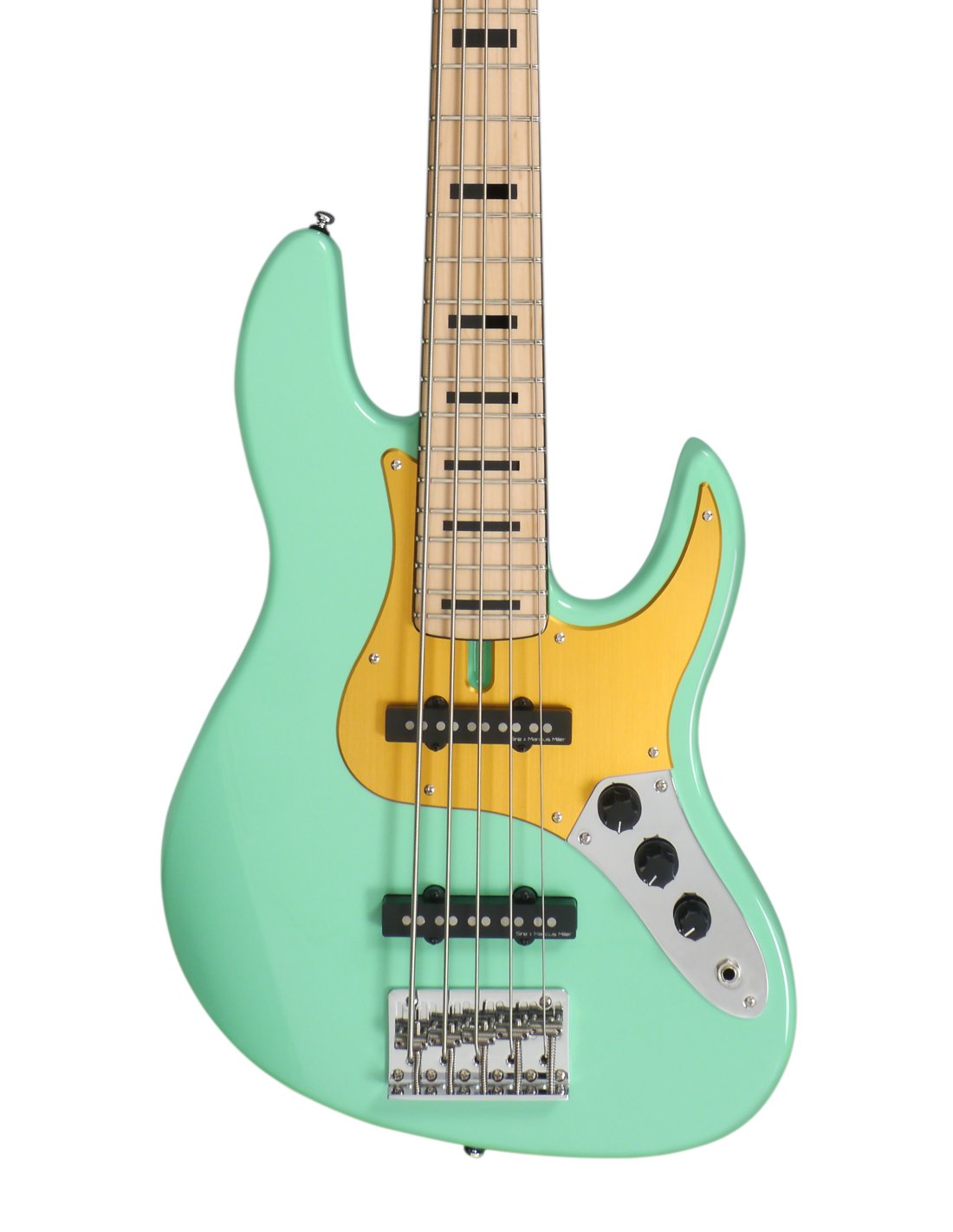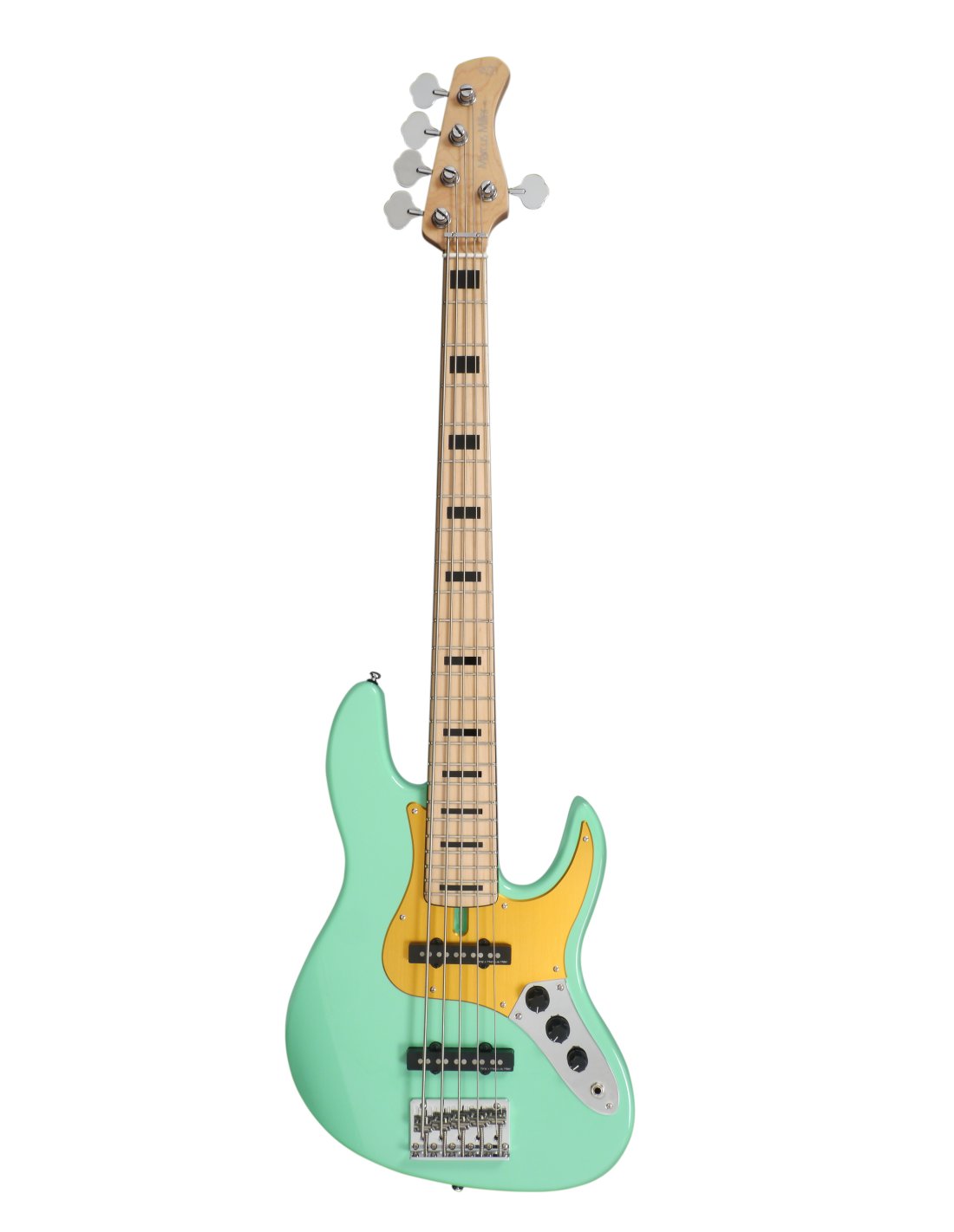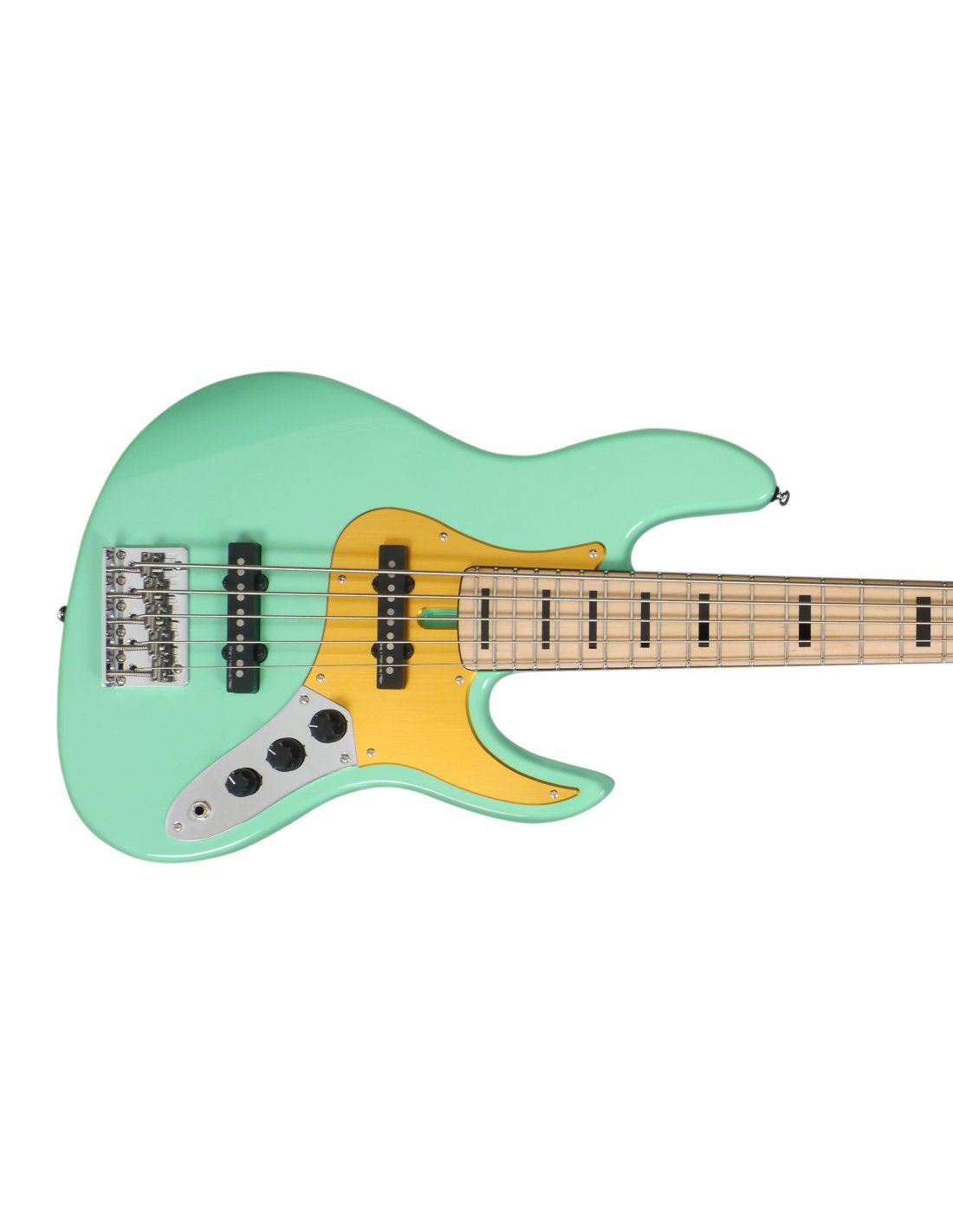 Korpus: Nordamerikanischer Erle. Korpusform: Marcus Miller Jazz Typ 24 Bünde. Hals: Einteiliges Ahorn. Halsform: C-Shape. Mensur: 34''. Griffbrett: Ahorn (Abgerundete Kanten). Radius des Griffbretts: 9.5''. Bünde: 2.4mm Medium. 24 Bünde. Sattel: Knochen-Sattel, 5 Saiten - Breite 46mm. Binding: Einlagig BK. Einlage: BK Quadratblock. Halsverbindung: Stahlplatte mit 4 Schrauben. Tonabnehmer: Marcus Vintage-J Revolution Set. Elektronik: Passive Ton- und Lautstärkeregler. Regler: Lautstärke (PU Hals), Lautstärke (PU Steg), Ton (Master). Knöpfe: BK Jazz. Steg: Marcus Miller Vintage-S. Mechaniken: Premium Open-Gear. Finish der Mechaniken: Chrom. Schlagbrett: Vergoldetes Aluminium. Mild Green Finish.
