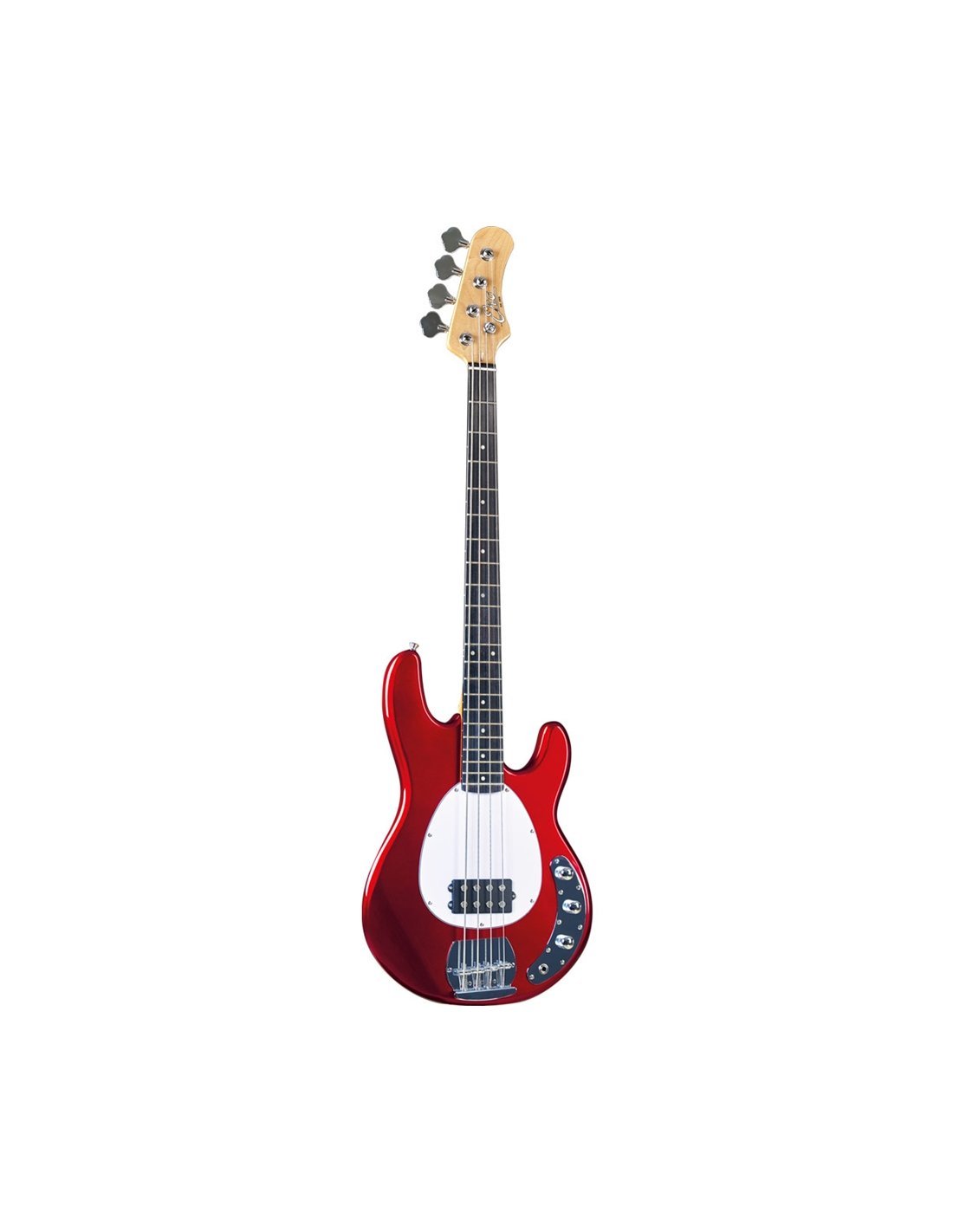 Der Bass MM-300 greift das Design eines der bekanntesten Bässe in der Rockgeschichte auf, unverwechselbar durch das eiförmige Schlagbrett. Mit einer Mensur von 868 mm präsentiert sich dieser 4-saitige Bass mit einem Korpus aus Erle, an dem ein Hals aus Ahorn verschraubt ist. Das Griffbrett besteht aus südamerikanischem Roupanà und hat 21 Bünde. Die verchromte Brücke verfügt über 4 unabhängige Saitenreiter. Direkt daneben finden wir einen Humbucker, der von 2 Lautstärkereglern und einem Tonregler mit verchromter Abdeckung gesteuert wird.