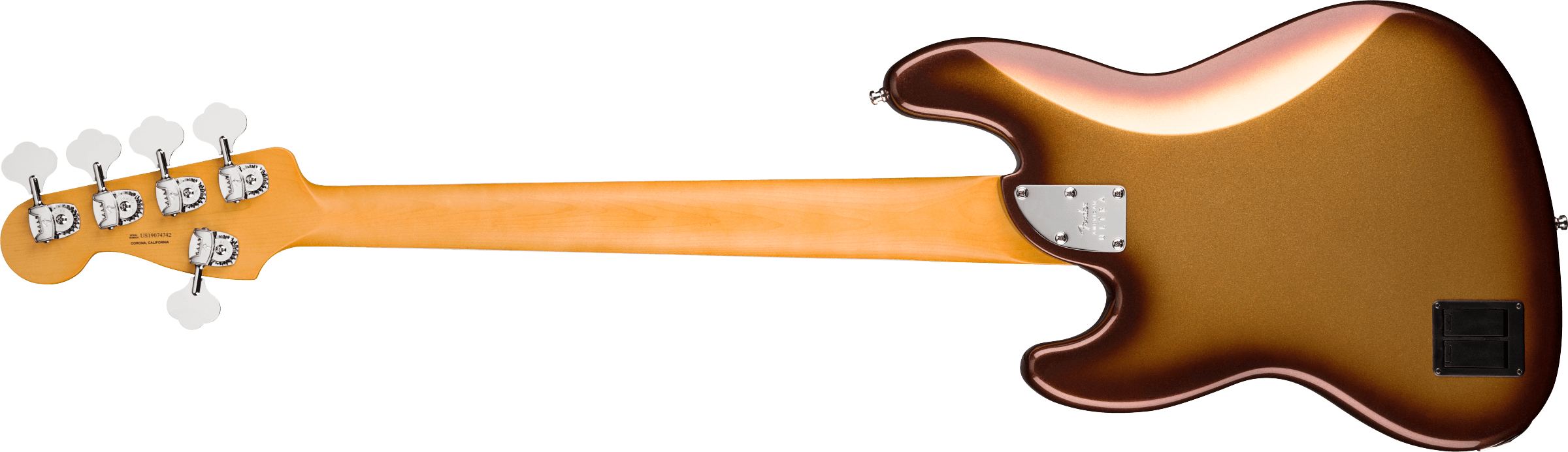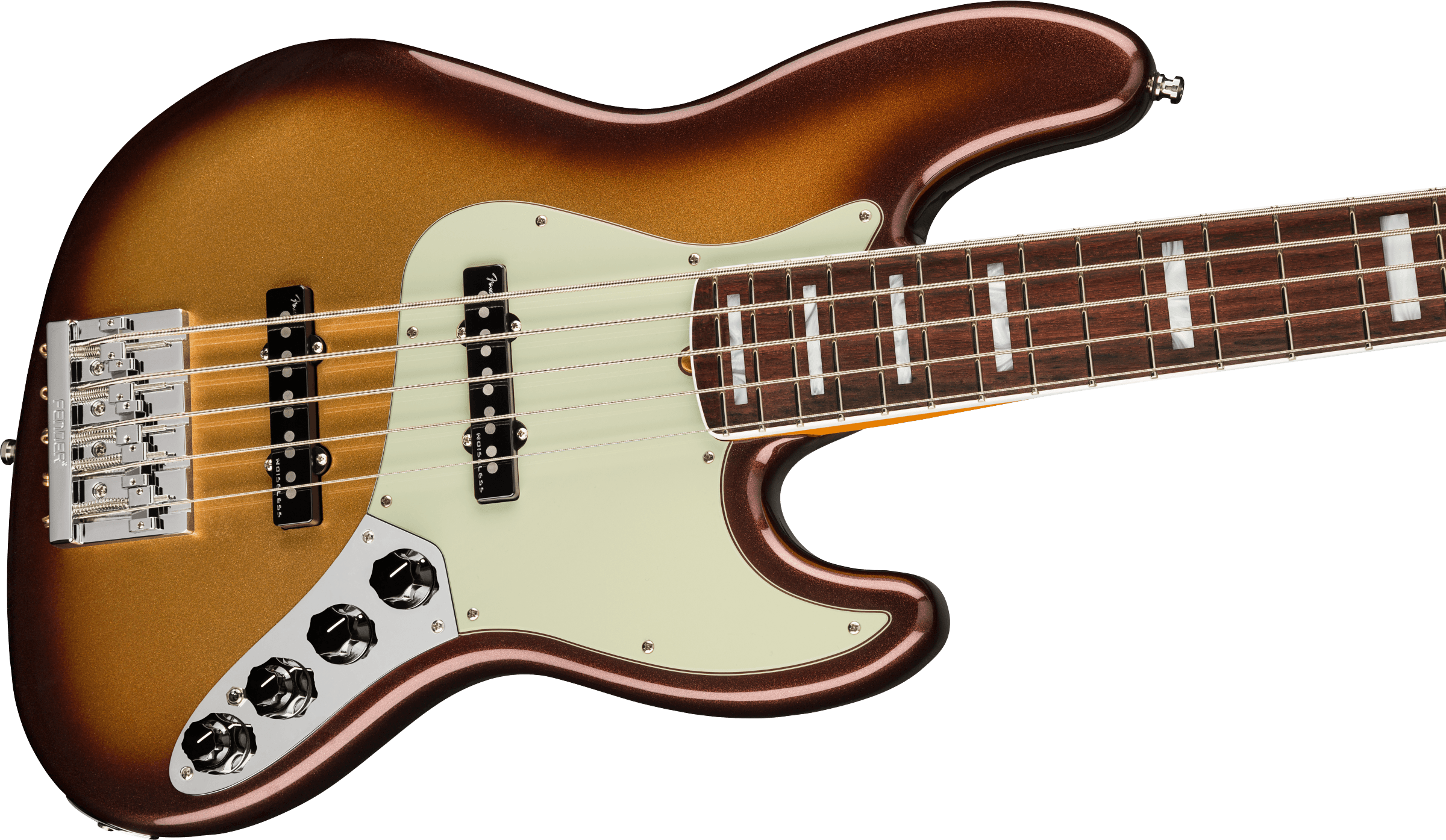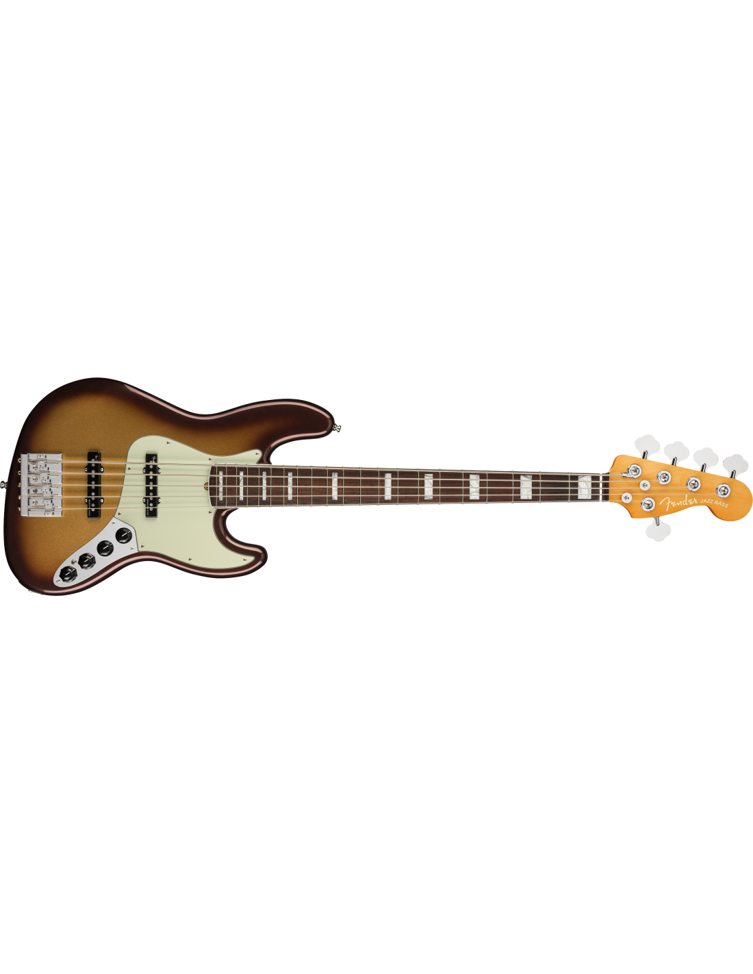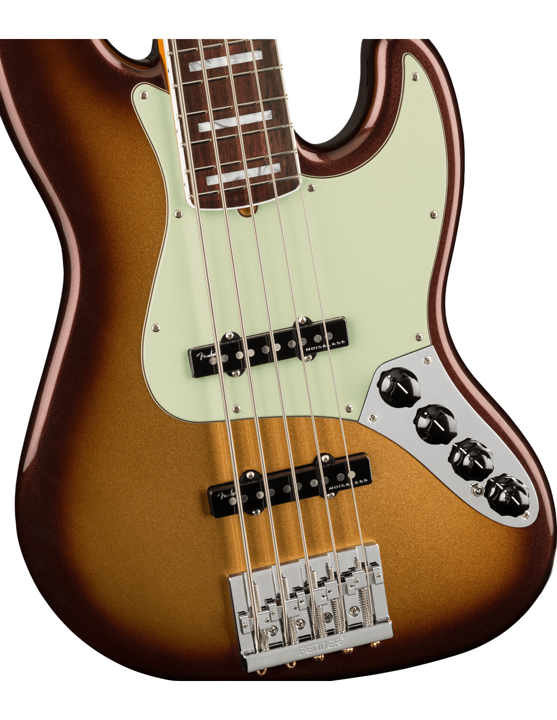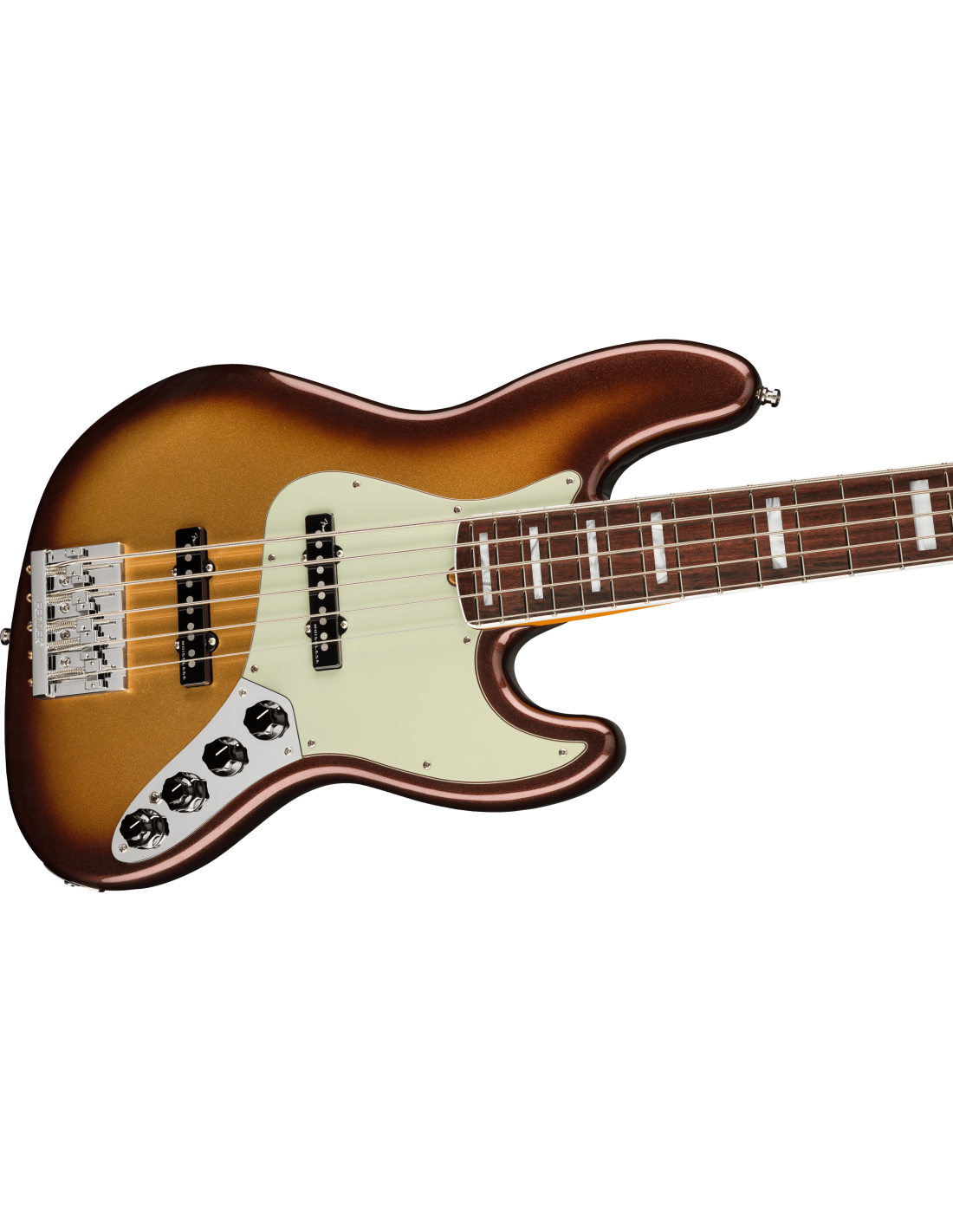 FENDER AM ULTRA JAZZ BASS V RW MBST ist ein E-Bass mit 5 Saiten, Modell American Ultra Jazz Bass V, mit einem Korpus aus Alder (Erle) und einer glänzenden Urethan-Oberfläche, einem Ahornhals im modernen "D"-Profil, einem Palisandergriffbrett mit einem kompositionalen Radius von 10"-14" mit 21 Medium Jumbo Bünden und Einlagen aus White Pearloid Blocks, einem Mint Green Schlagbrett, einem Bi-Flex Truss Rod, einem Sattel aus Knochen, vernickeltem Hardware, Fender "F" Light-Weight Vintage-Paddle Keys mit Vintage-Style Disc Saitenabsenkung und einem Fender Hi-Mass Brücke mit 5 Saitenreitern. Die aktive/passive Elektronik besteht aus 2 Fender Ultra Noiseless Vintage Jazz Bass Single Coil Pickups mit Master Volume mit Pan-Pot, einem 3-Band EQ mit Treble/Mid/Bass-Reglern, einem Tone-Regler und einem Mini Toggle zur Auswahl zwischen aktiver/passiver Elektronik. Inklusive Deluxe Molded Case