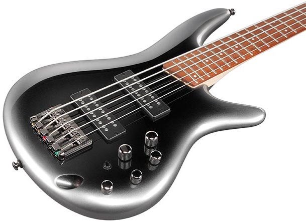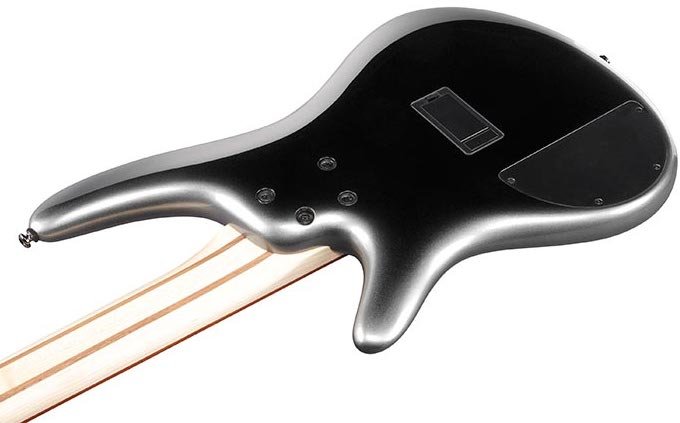 IBANEZ SR305E-MGB ist ein 5-saitiger E-Bass, Modell Ibanez SR Standard SR305E, mit einem Nyato-Korpus, einem 5-teiligen Ahorn/Nussbaum-Hals SR5, einem Jatoba-Griffbrett mit 12" Radius und 24 Medium-Bünden sowie weißen Punkt-Inlays, einem 45 mm PPS-Sattel, Cosmo Black Hardware, geschlossenen Ibanez Bass Mechaniken aus Cosmo Black und einem festen Accu-cast B125 Bridge mit 5 Saitenreitern. Die aktive Elektronik besteht aus 2 PowerSpan Dual Coil Passive Pickups, mit integrierter Ibanez Custom Electronics 3-Band EQ, Master Volume-Regler, Balancer-Regler und einem 3-Wege Power Tap Schalter zur Auswahl von Serien-/Parallelschaltung der Spulen und 3 Klangmodi: Tap Mode (Single Coil), Series Mode (Humbucking) und Power Tap Mode (Mix)