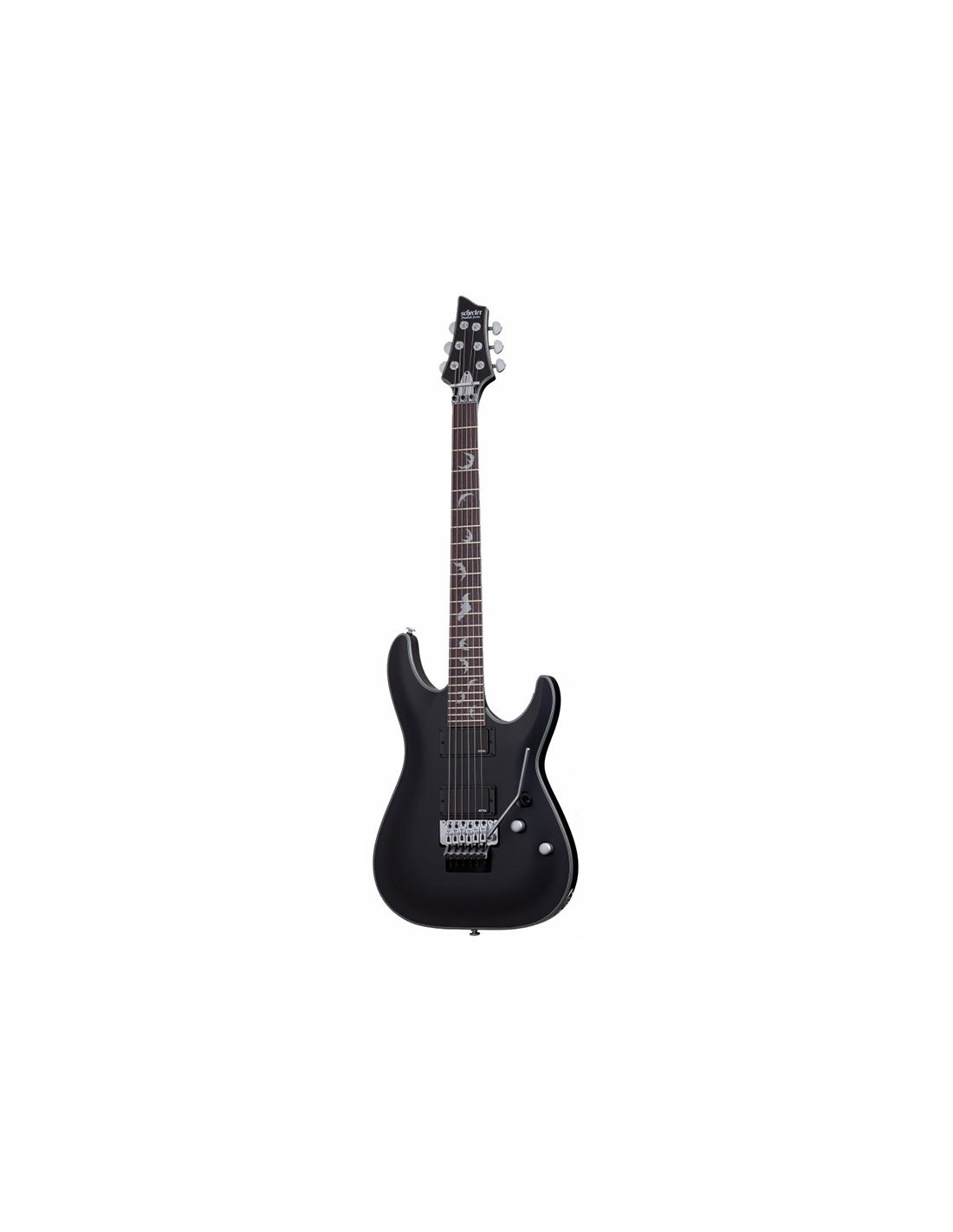DAMIEN PLATINUM-6-FR-SBK - E-Gitarre 6 Saiten - Konstruktion: Set-Neck mit Ultra Access - Korpus: Mahagoni - Hals: Ahorn Thin "C" - Griffbrett: Palisander - Mensur: 25,5” - 24 Bünde X-Jumbo - Einlagen: “Platinum bats” - Binding: mehrschichtig silber/platin - Tonabnehmer: 2x Humbucker EMG Active 81 + 85 - Regler: 1x Ton + 1x Lautstärke + 3-Wege-Schalter - Bridge: Floyd Rose Special - Mechaniken: Grover - Hardware-Finish: satiniert verchromt - Sattel: Floyd Rose Locking - Farbe: schwarz - Finish: satiniert.