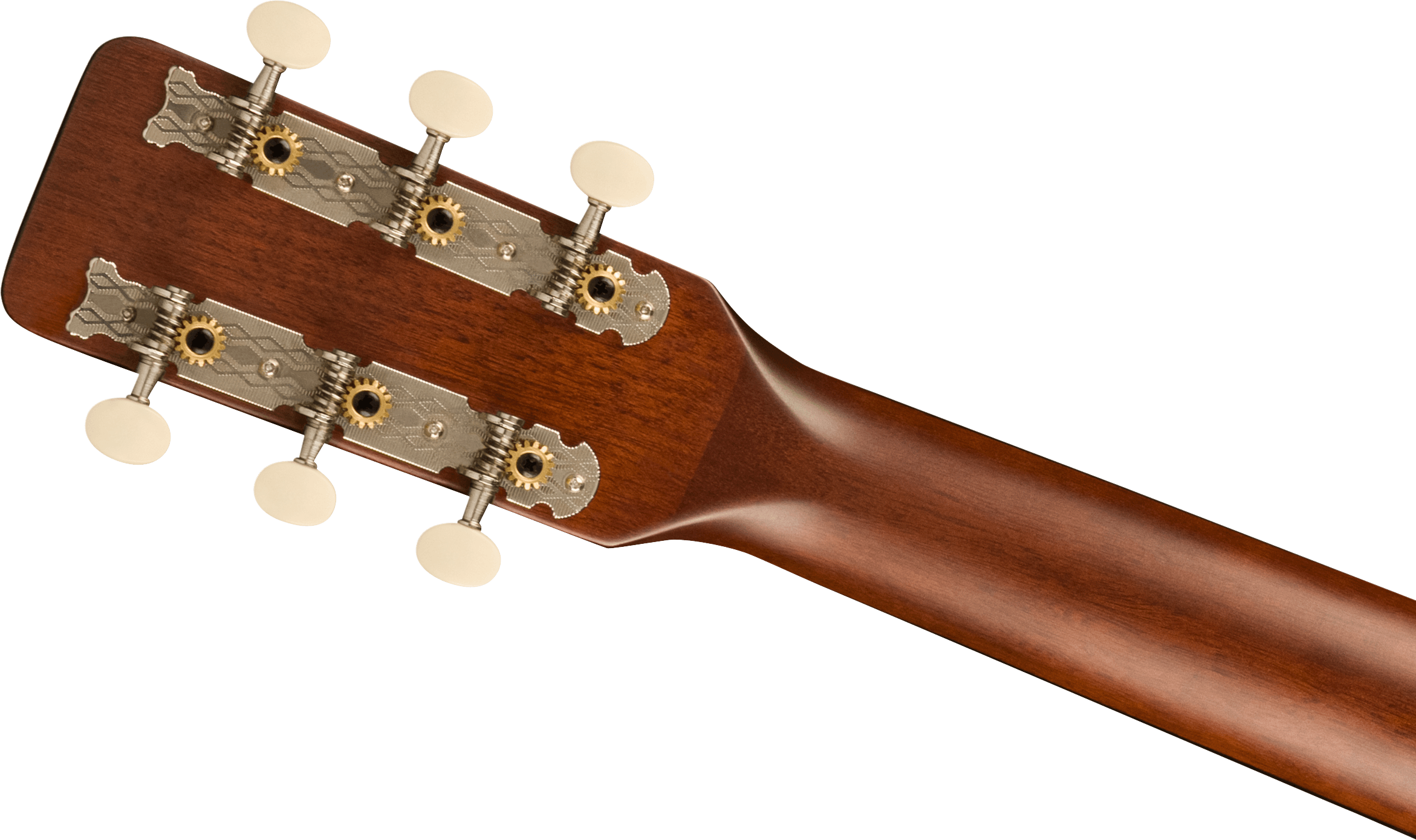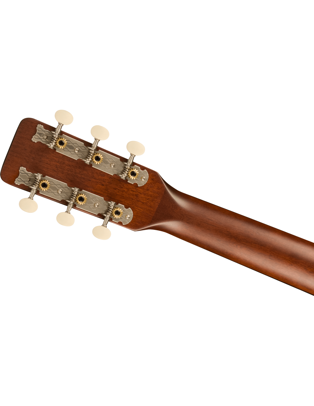 GRETSCH JIM DANDY DREADNOUGHT DELTO BLACK TOP ist eine elektrifizierte Akustikgitarre im Dreadnought-Format mit verkürztem Maßstab, Serie Jim Dandy Deltoluxe Dreadnought, mit Decke, Boden und Zargen aus laminiertem Sapele und X-Bracing, Hals aus Nato in "C" Shape-Profil, Kopfplatte 1950er Jahre Gretsch 3x3, Griffbrett aus Walnuss mit 12" Radius und 20 Vintage-Bünden sowie Einlagen aus White Pearloid Dot, Sattel aus synthetischem Knochen, Nickel-Hardware, gegossene Open-Gear-Mechaniken und Walnuss-Brücke mit einer Sattel aus Sperrholz. Die Elektronik besteht aus einem integrierten Gretsch Deltoluxe Magnet-Pickup in der Schallöffnung.