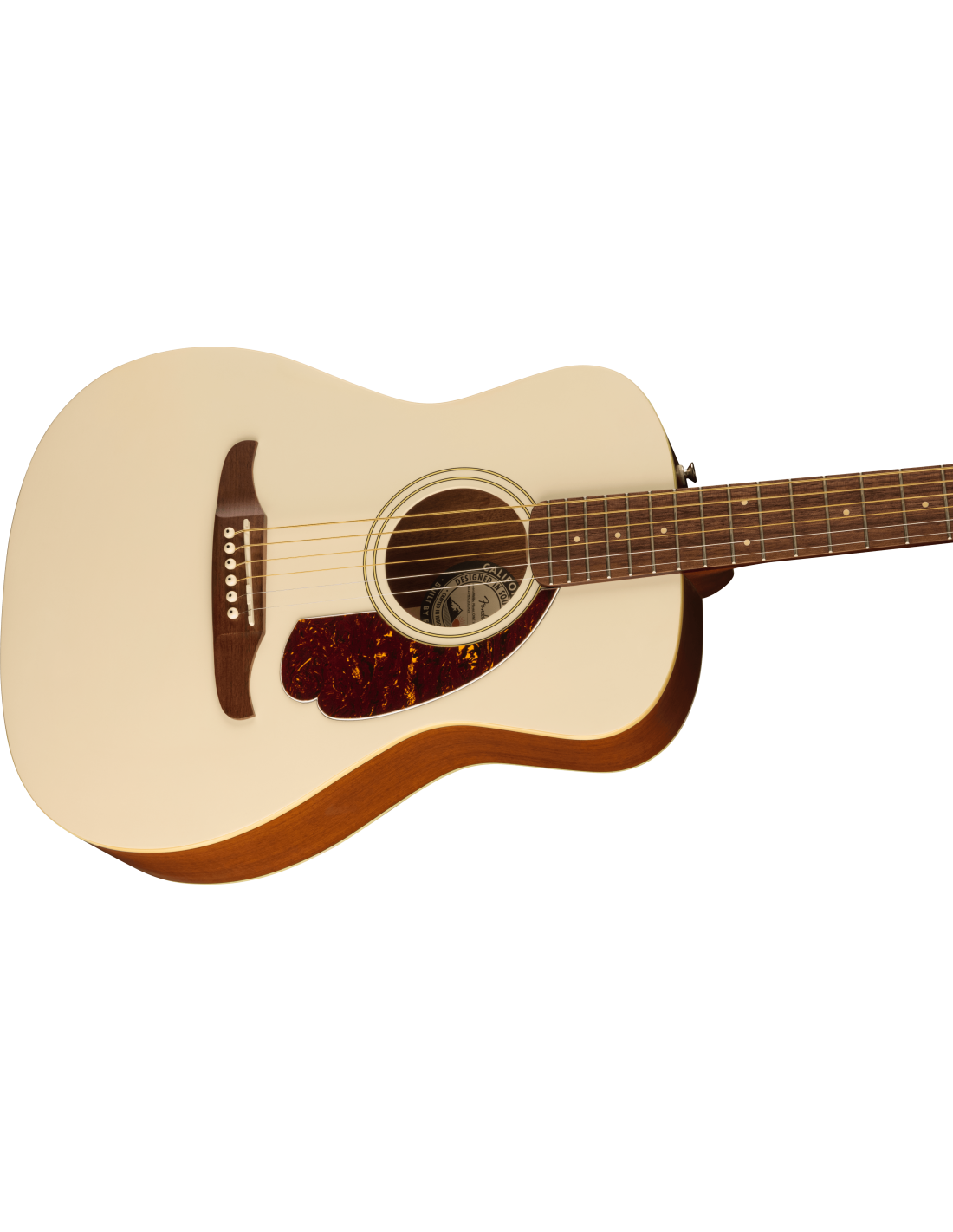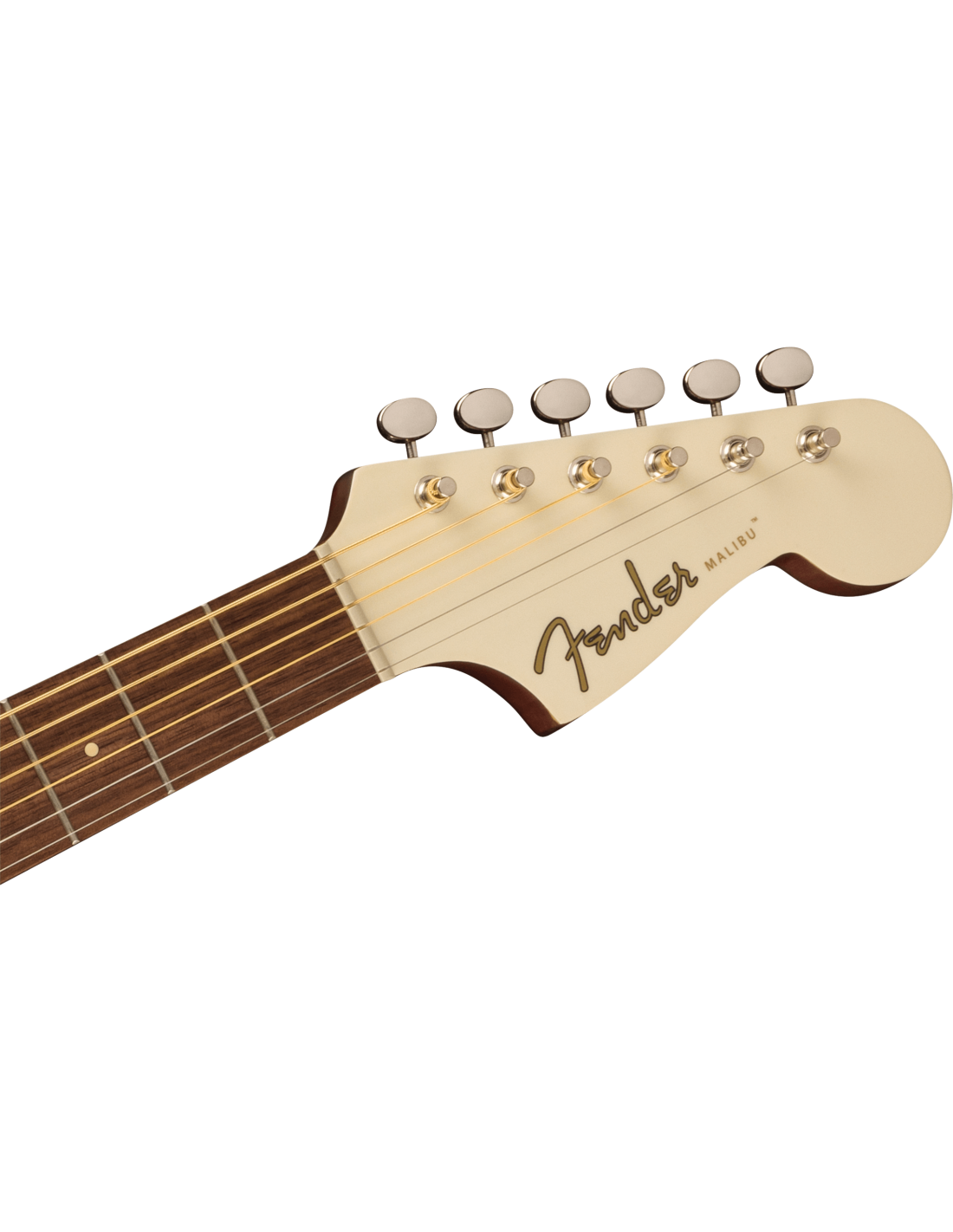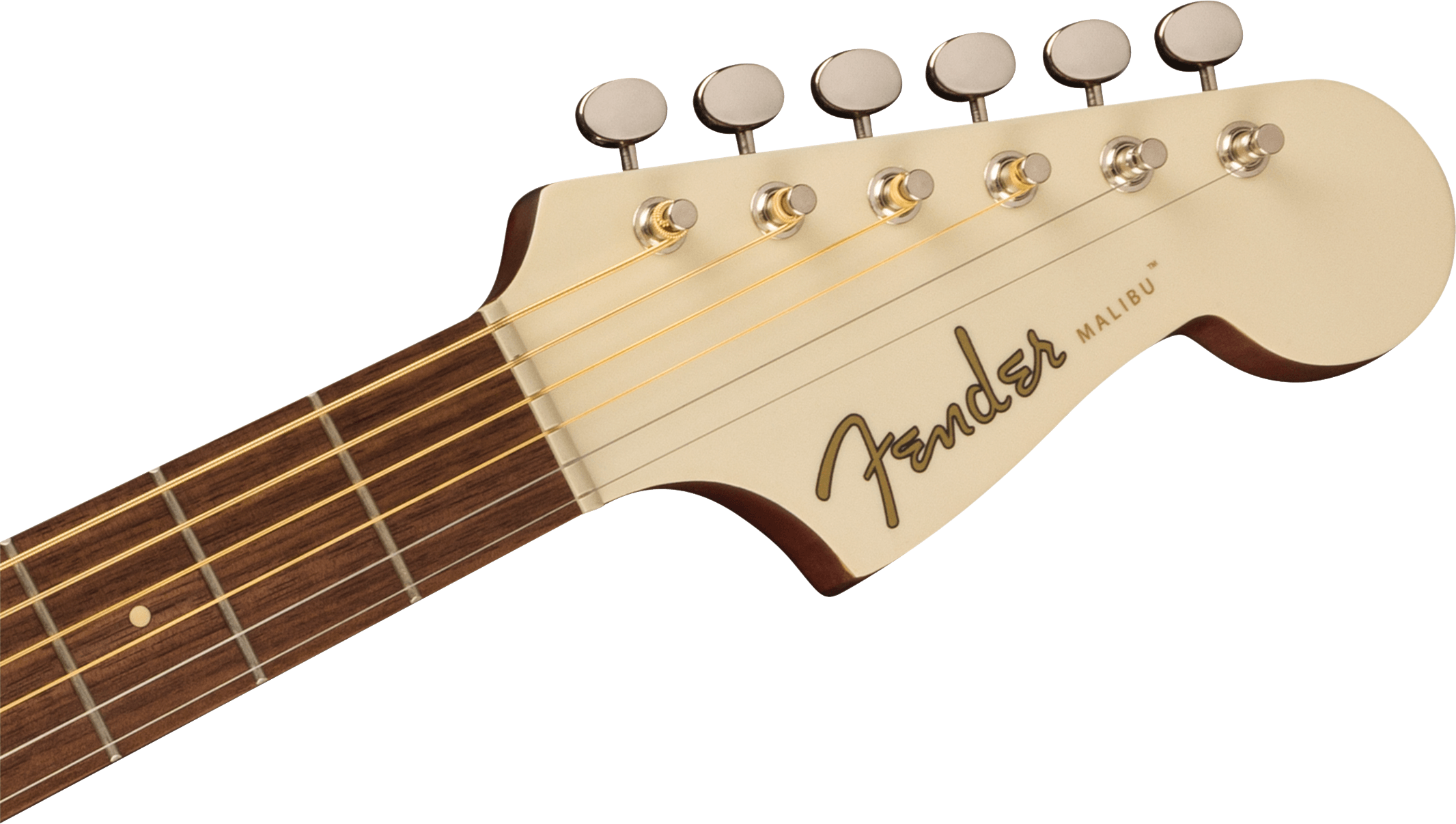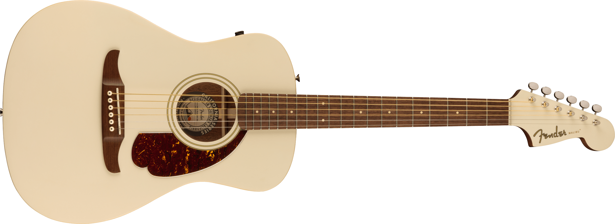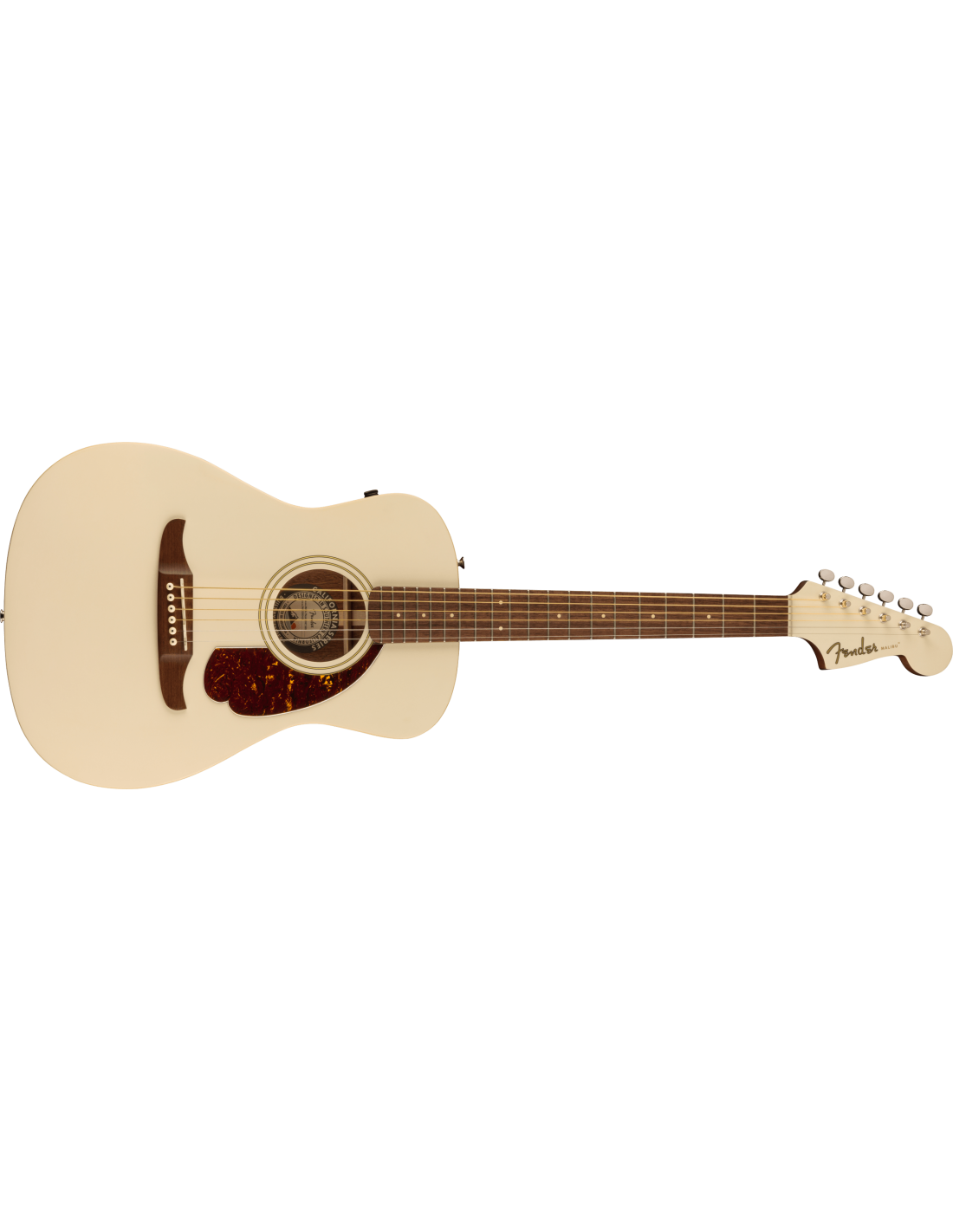 FENDER MALIBU PLAYER OLYMPIC WHITE WN ist eine akustische E-Gitarre mit kurzer Mensur, in Parlor-Korpusform, Modell Fender Malibu Player aus der Fender California-Serie, mit massivem Sitka-Fichten-Top, Boden und Zargen aus laminiertem Sapele und Satin-Finish, Hals aus Nato mit Slim "C"-Profil, Tilt-Back Stratocaster Kopfplatte, Griffbrett aus Walnuss mit 15,75" Radius und 20 Bünden von 2,4 mm und White Dots Einlagen, Graph Tech NuBone Sattel, vernickeltes Hardware, Fender Vintage Style Mechaniken und Modern Viking Steg. Die Elektronik besteht aus einem seitlich montierten Fishman Flex Vorverstärker, mit unter dem Sattel montiertem Piezo-Pickup und Lautstärke- und Tonkontrolle mit Push/Pull für die Phasenkontrolle.